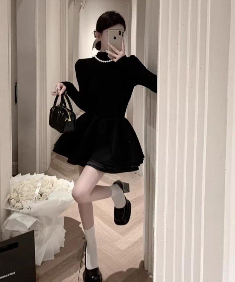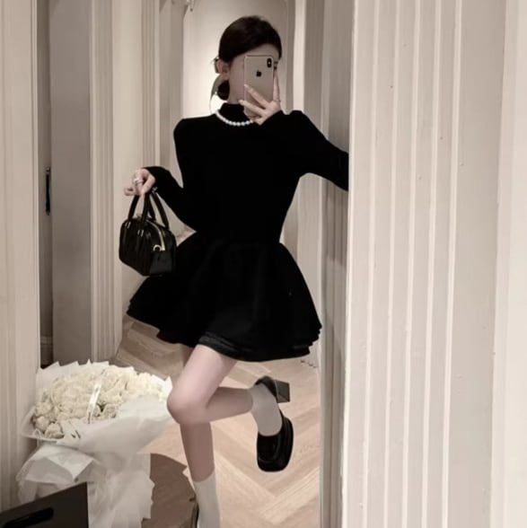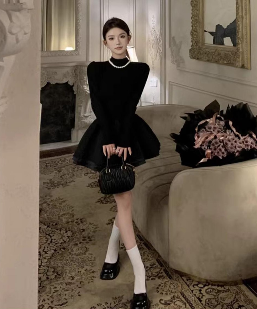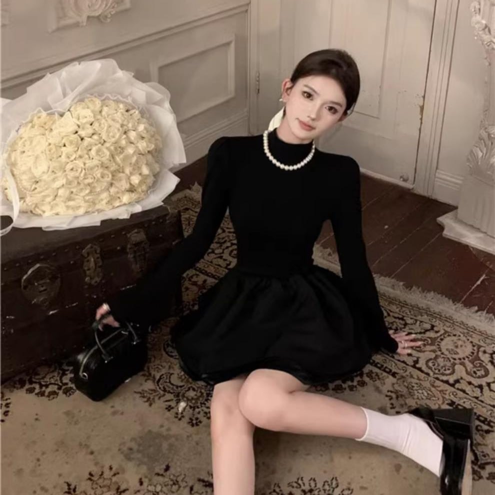 ミニドレス キャバドレス かわいい ふんわりシルエット フレンチムード ハイネック デート 通勤 お呼ばれコーデ JC2-XHY918113