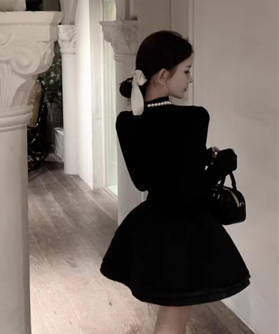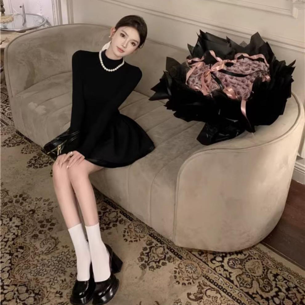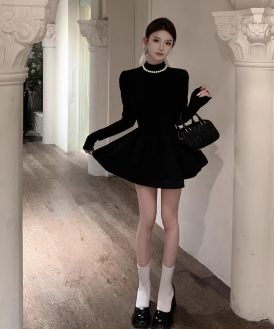 ミニドレス キャバドレス かわいい ふんわりシルエット フレンチムード ハイネック デート 通勤 お呼ばれコーデ JC2-XHY918113
