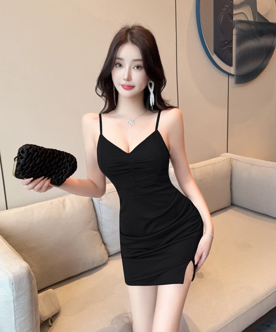 【3色】ミニドレス キャバドレス セクシー ボディライン ディープネック キャミワンピ タイト クラブ ラウンジ JC2-DD6402