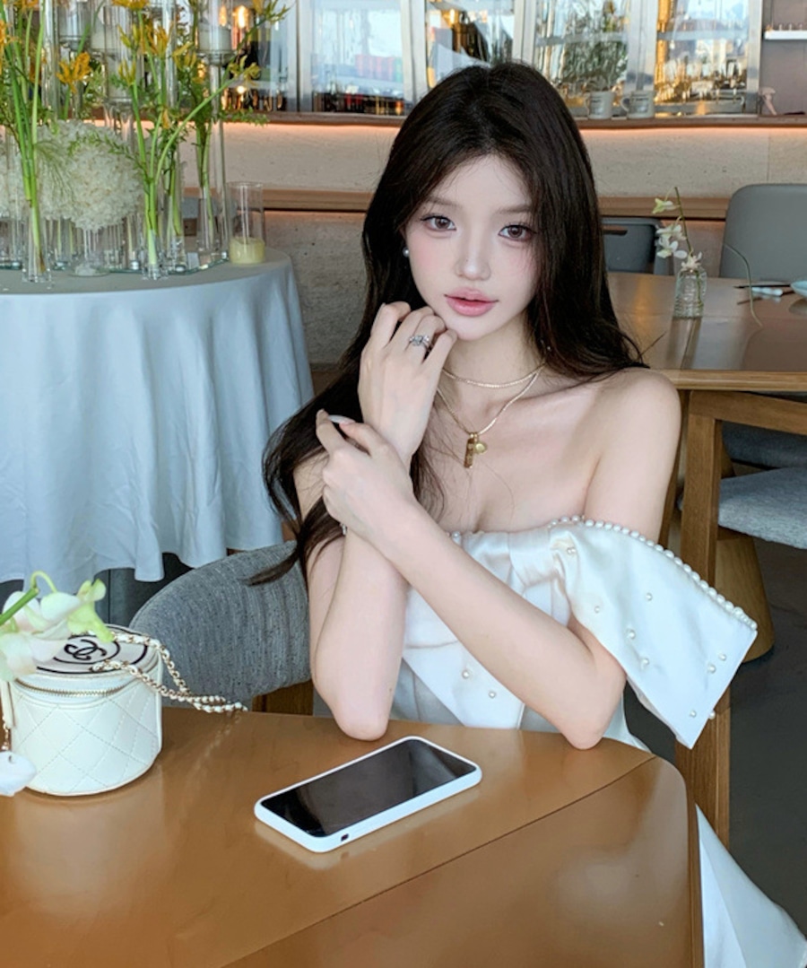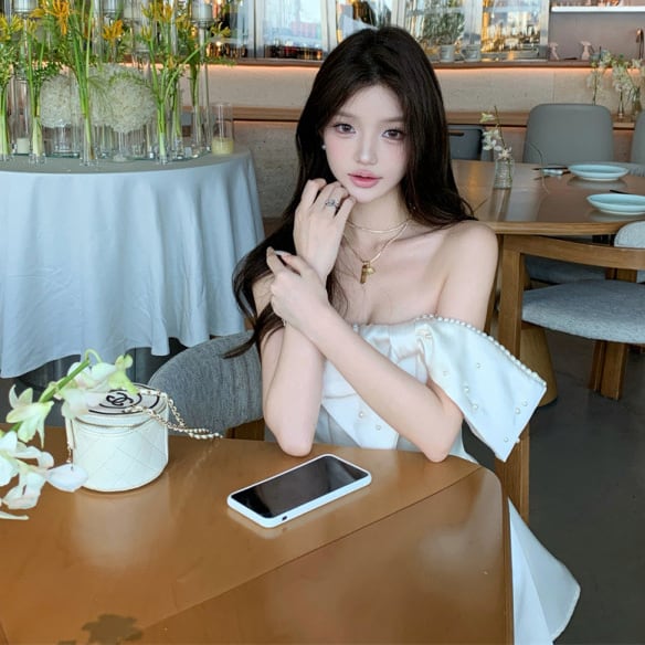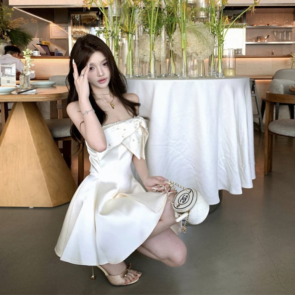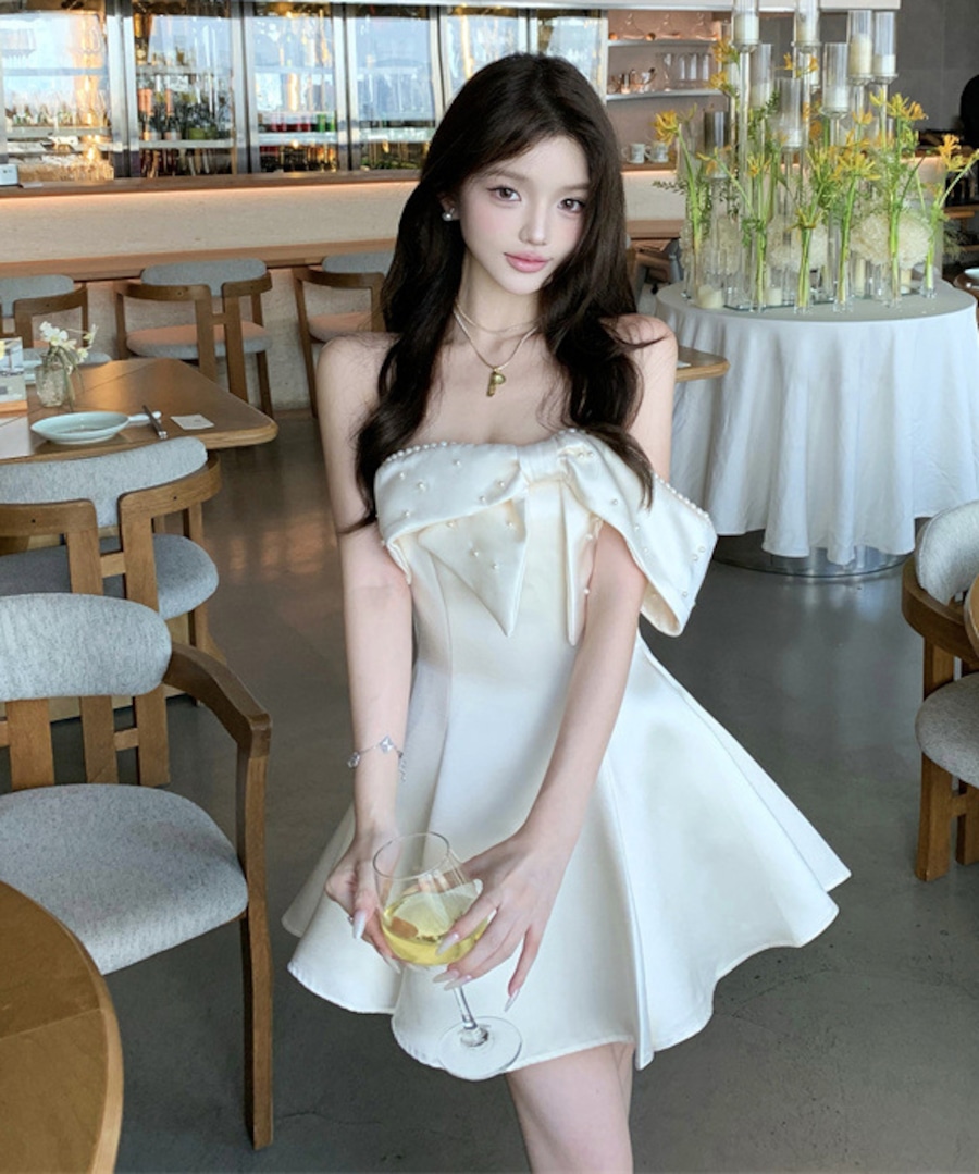ミニドレス キャバドレス フレンチスタイル オフショルダー リボンデザイン Aライン パール デート お出かけ カジュアル ランチ JC2-XHY918397