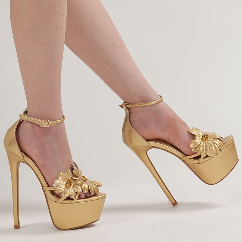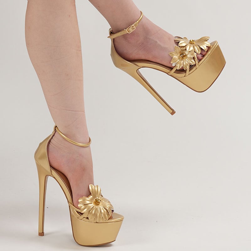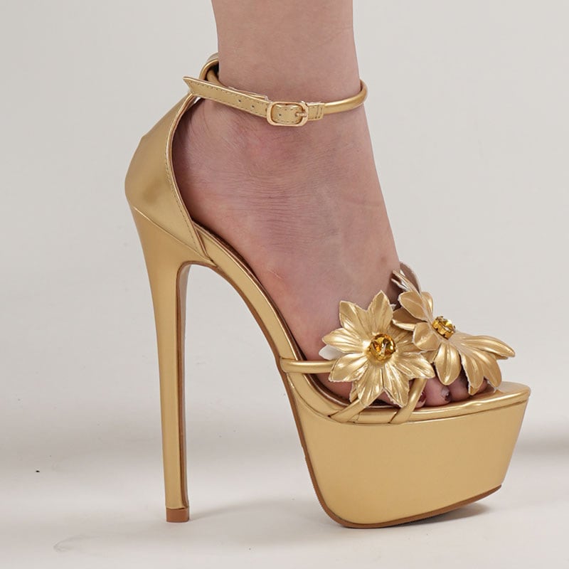 ハイヒール ビジューサンダル フラワーモチーフ プラットフォーム パーティーシューズ ナイトシーン ウェディング JC5-JLGMY-9966-283