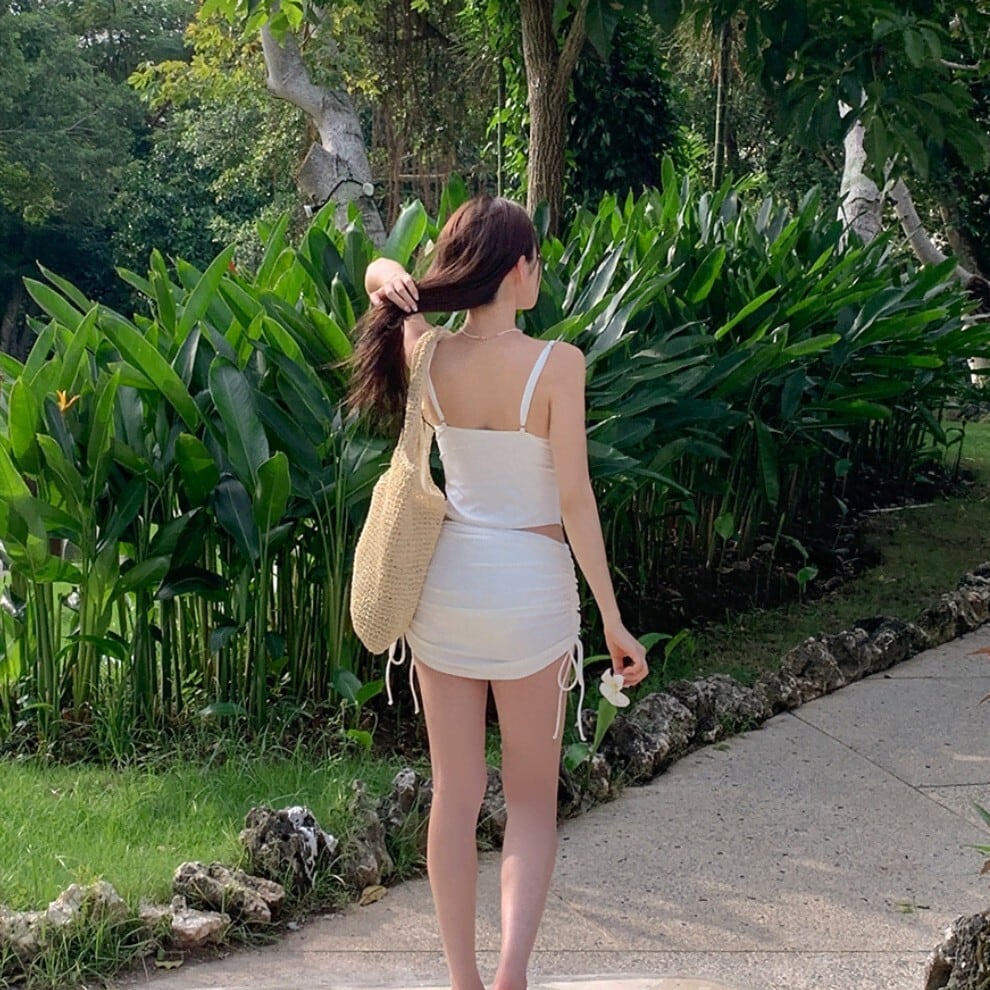 【3点セット】水着 ビキニ 韓国風 スカート付き ドローストリング ハイウエスト 温泉 リゾート ビーチ JC7-CF-SNM57092