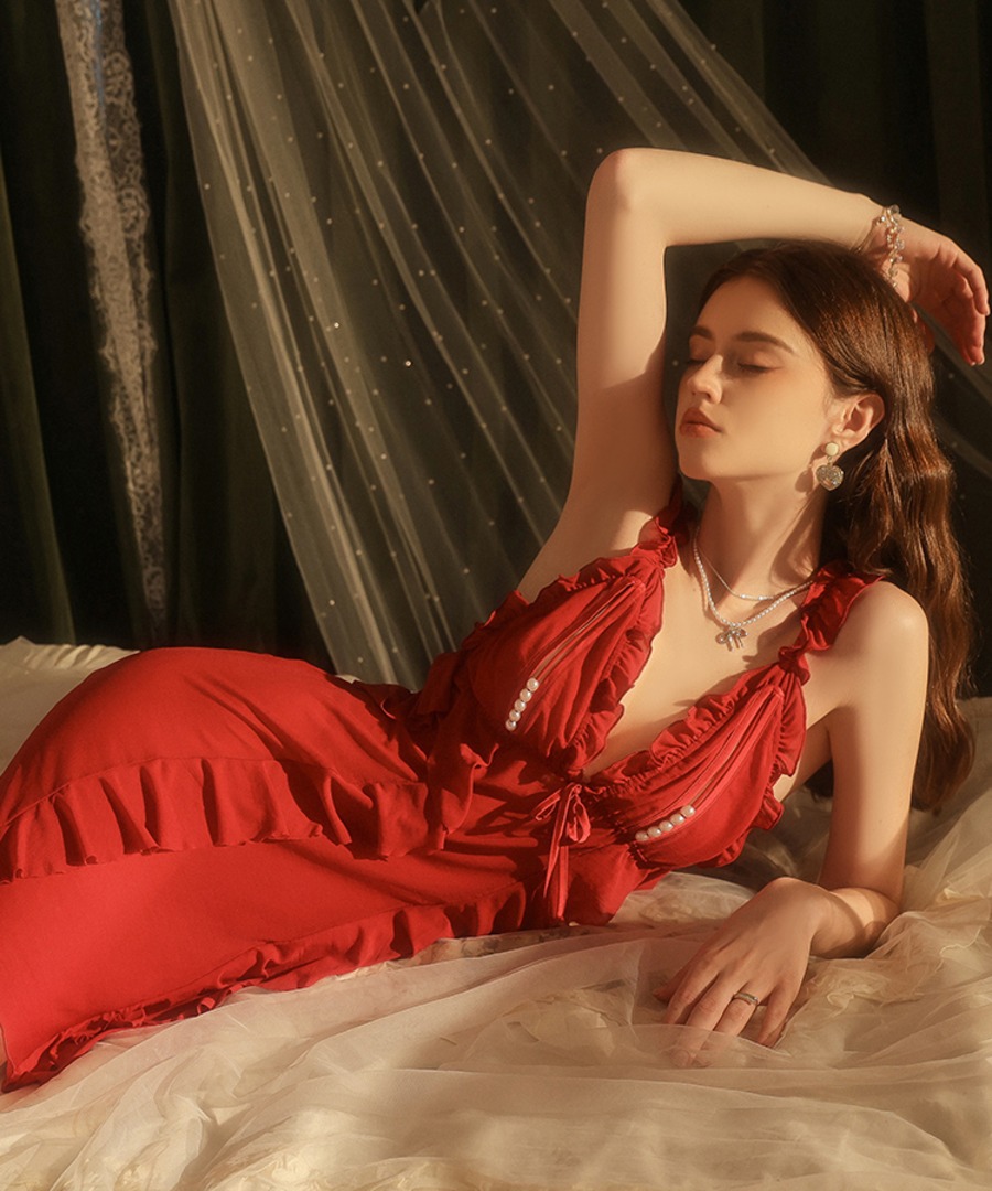 【4色】ルームウェア ランジェリー セクシー シアー素材 メッシュ レース カットアウト ビーズ 清楚系 キャミソール JC8-GR5716