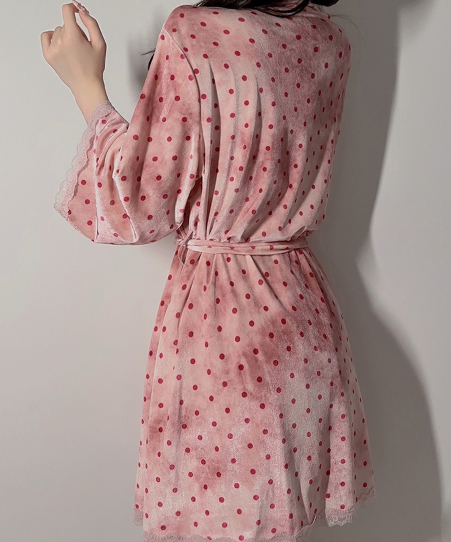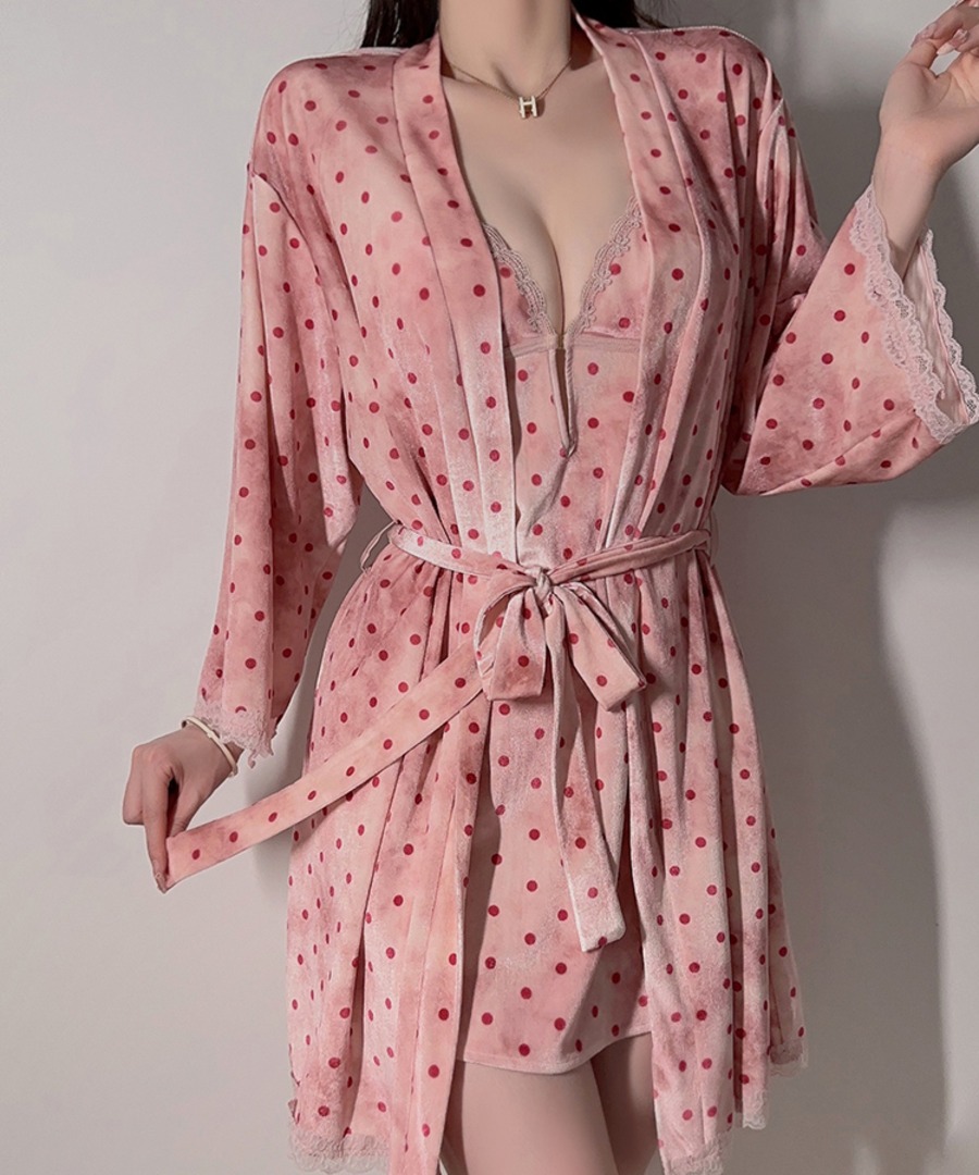 ルームウェア ランジェリー セクシー ベルベット レース 谷間メイク バックオープン ガウン付きセット JC8-GR6275