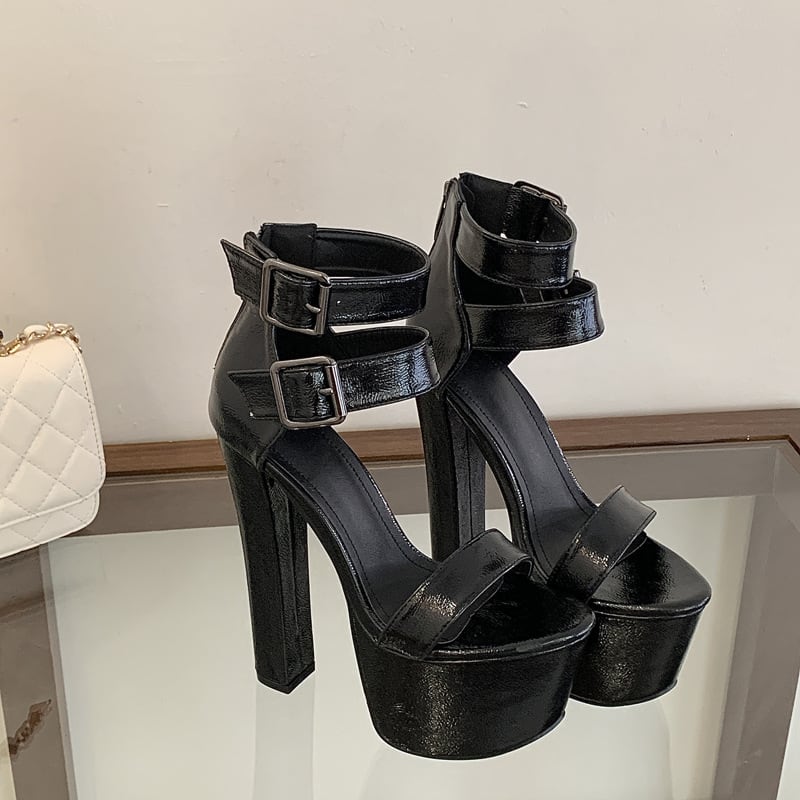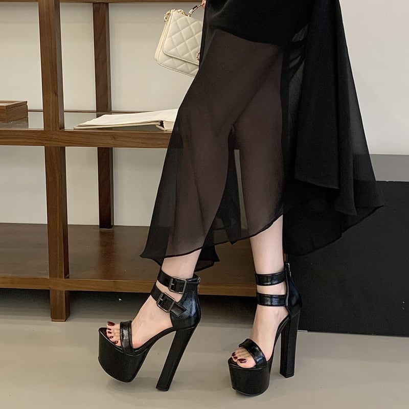 ハイヒール ラウンドトゥ バックル付き チャンキーヒール プラットフォーム ワンストラップサンダル JC5-JLG-MY-953-11