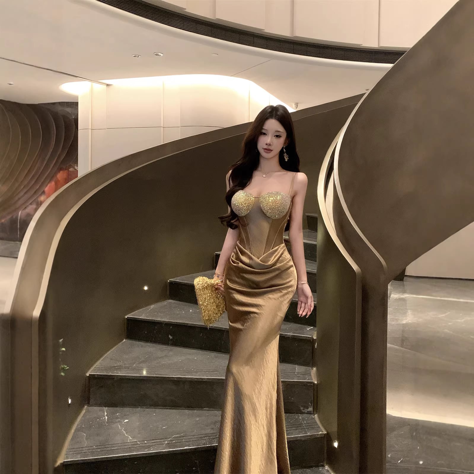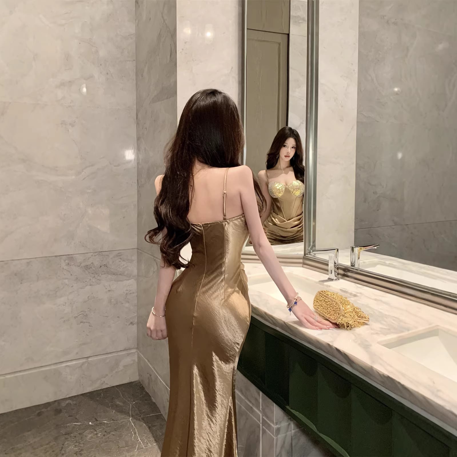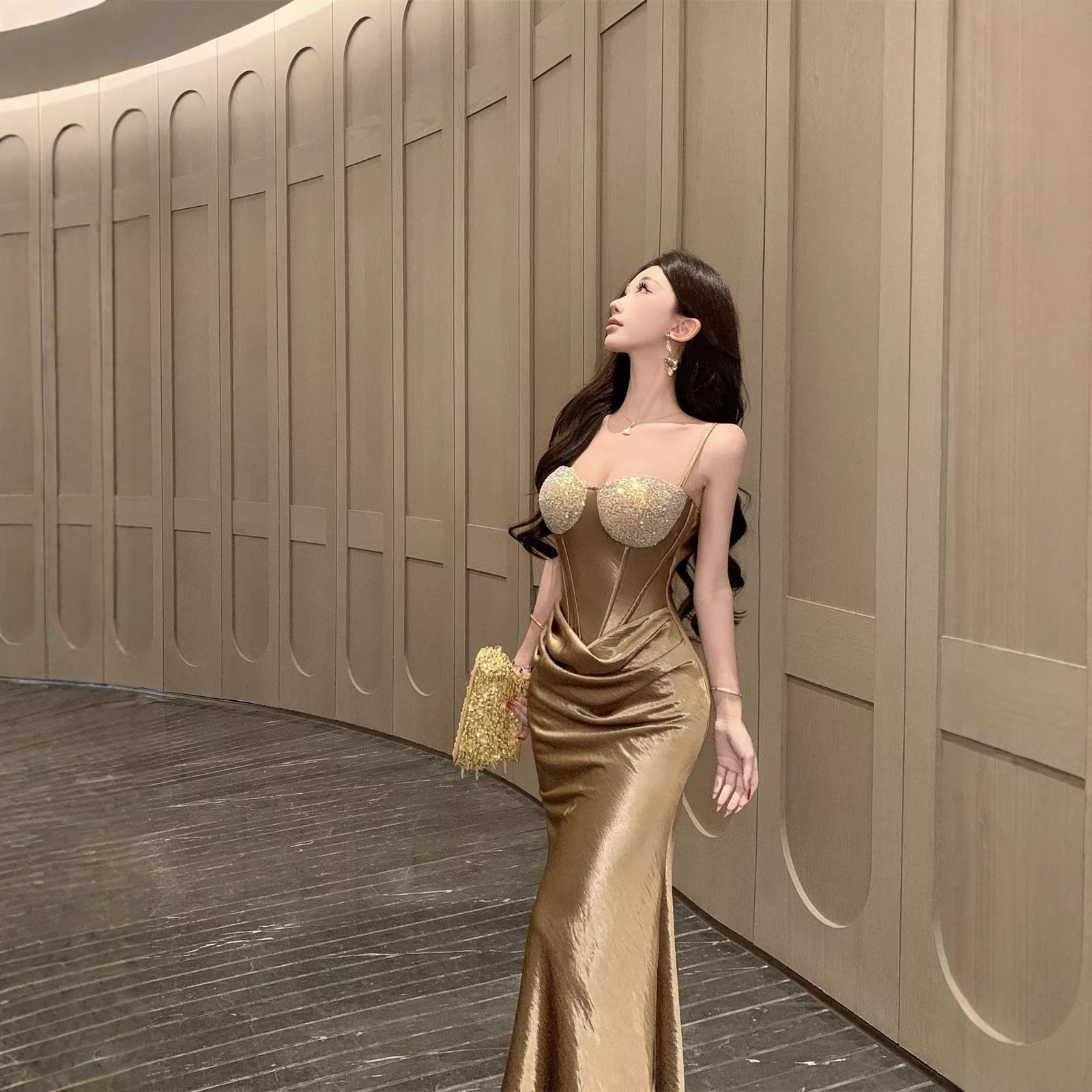 ロングドレス キャバドレス セクシー 上品 スパンコール キャミソール サテン マーメイドライン JC2-DD3835