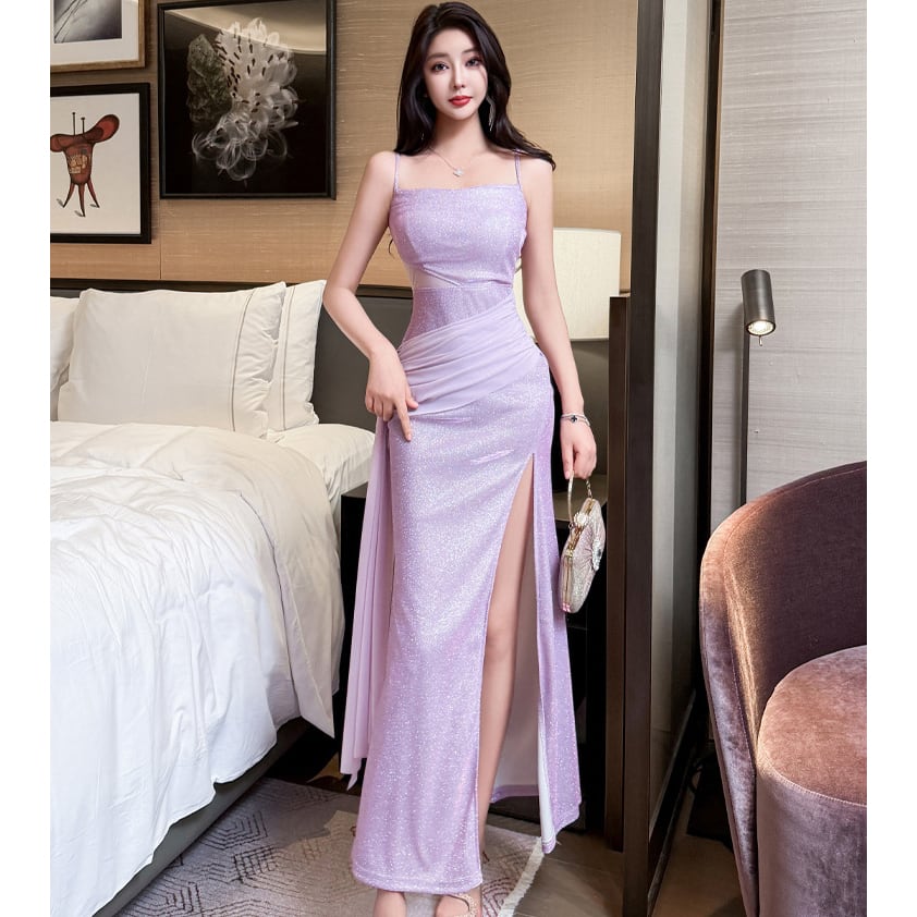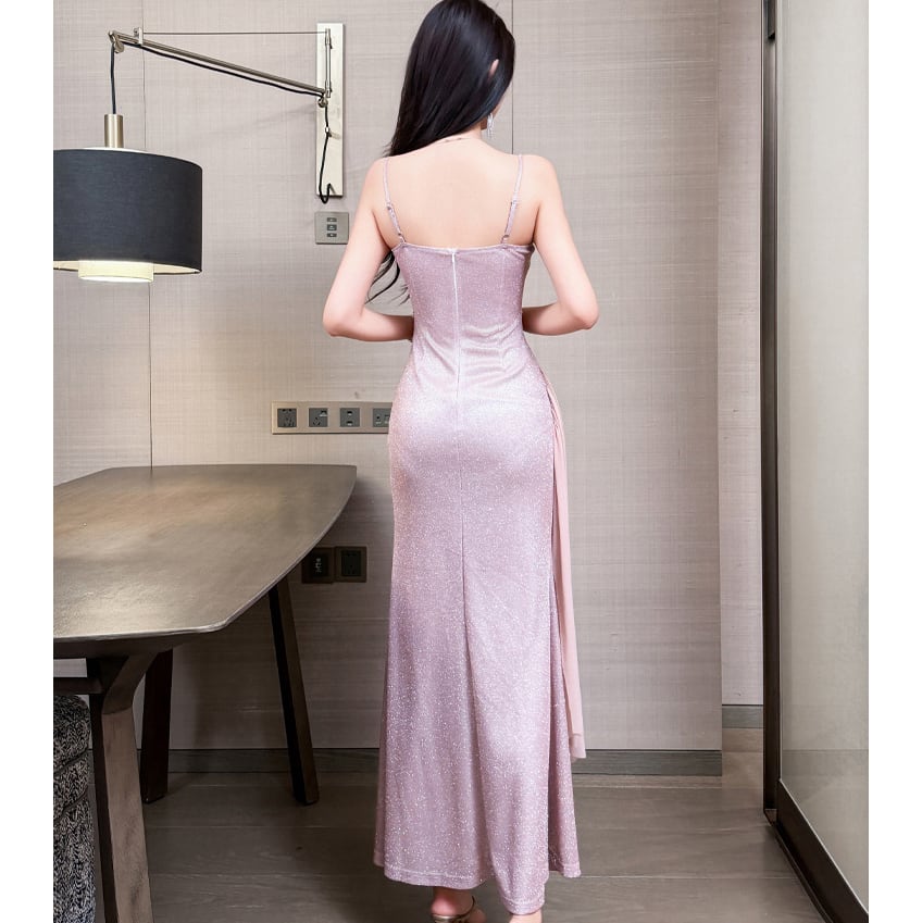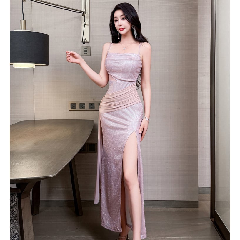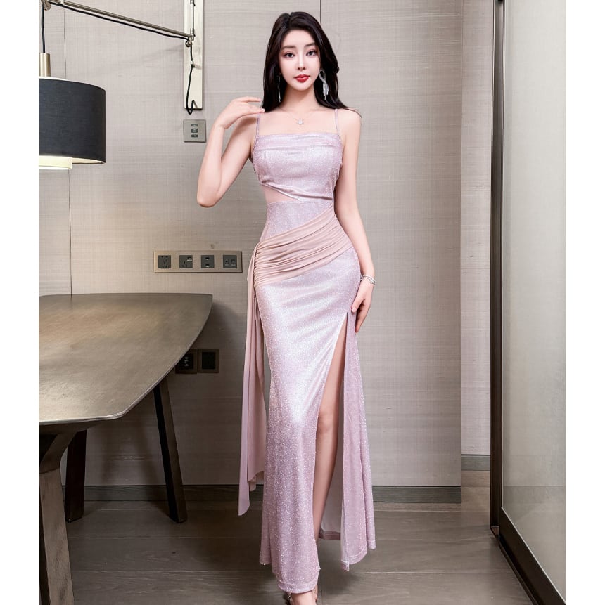 【2色】ロングドレス キャバドレス セクシー スリット入り ウエストシェイプ デコルテ映え 細見え クラブ JC2-JX5915