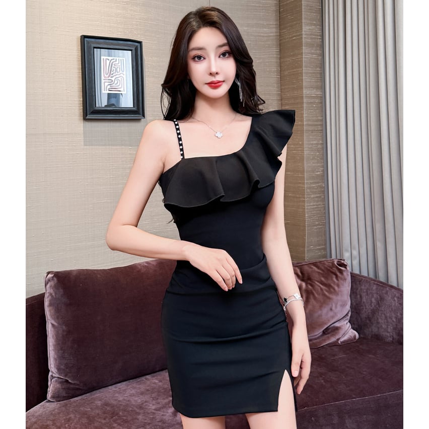 【2色】ミニドレス キャバドレス セクシー 韓国風 ワンショルダー キャミワンピ 上品 ボディコン JC2-JX5887