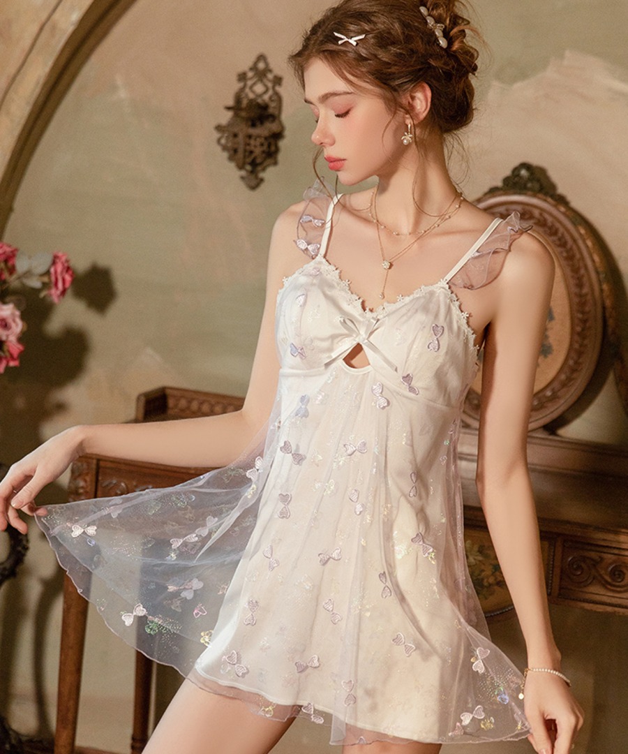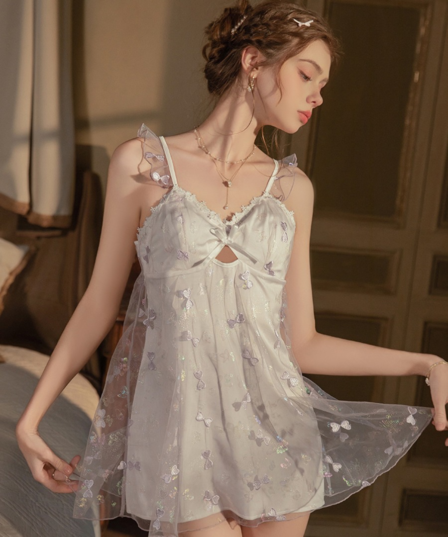 【2色】ルームウェア ランジェリー セクシー スウィート系 バタフライ刺繍 チュール サテン 谷間メイク バックオープン JC8-GR5261