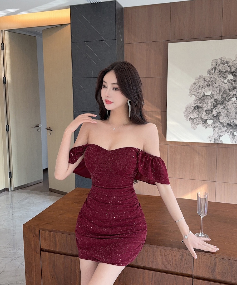 【2色】ミニドレス キャバドレス セクシー オフショルダー ディープネック ボディコン キラキラ クラブ JC2-DD4000