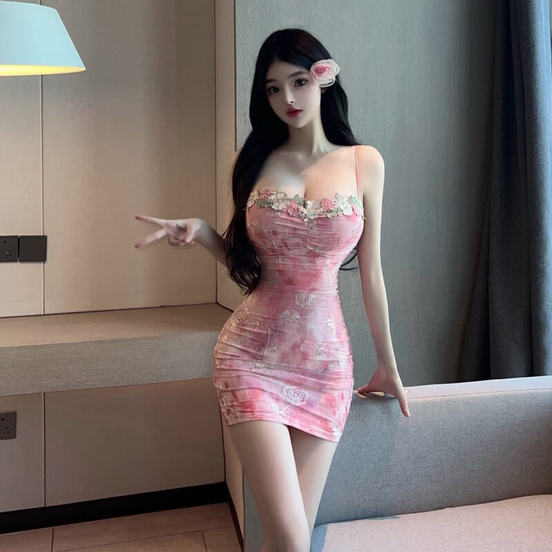 ミニドレス キャバドレス セクシー フラワー刺繍 キャミワンピ ボディコン クラブ 指名 JC2-2877DXH433