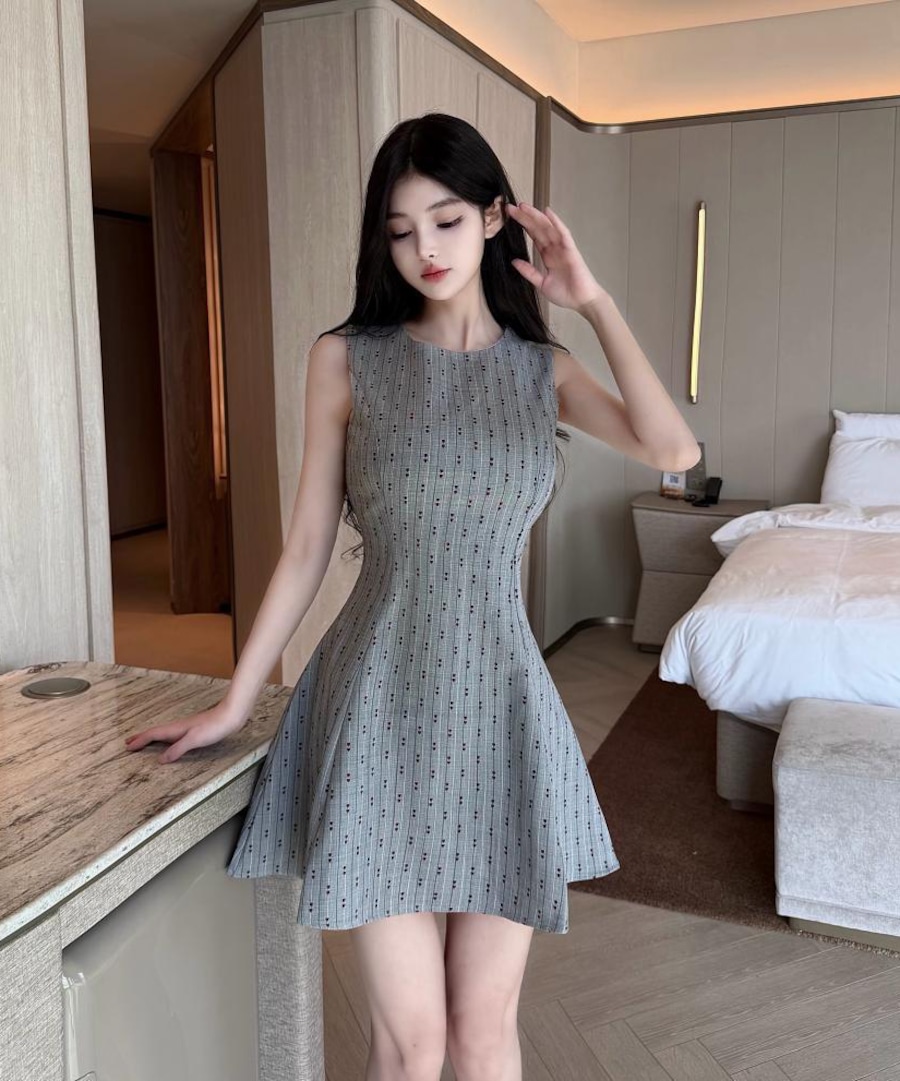 ミニドレス キャバドレス セクシー ラウンドネック ノースリーブ 着痩せ お尻カバー デート お出かけ お呼ばれ JC2-JW2935DXH433