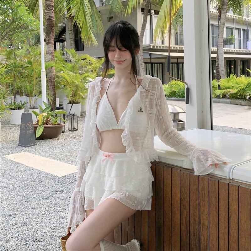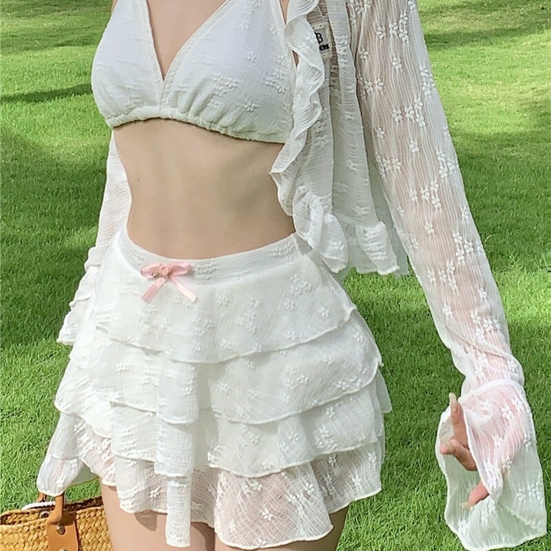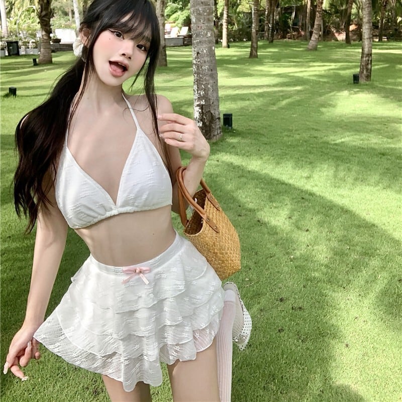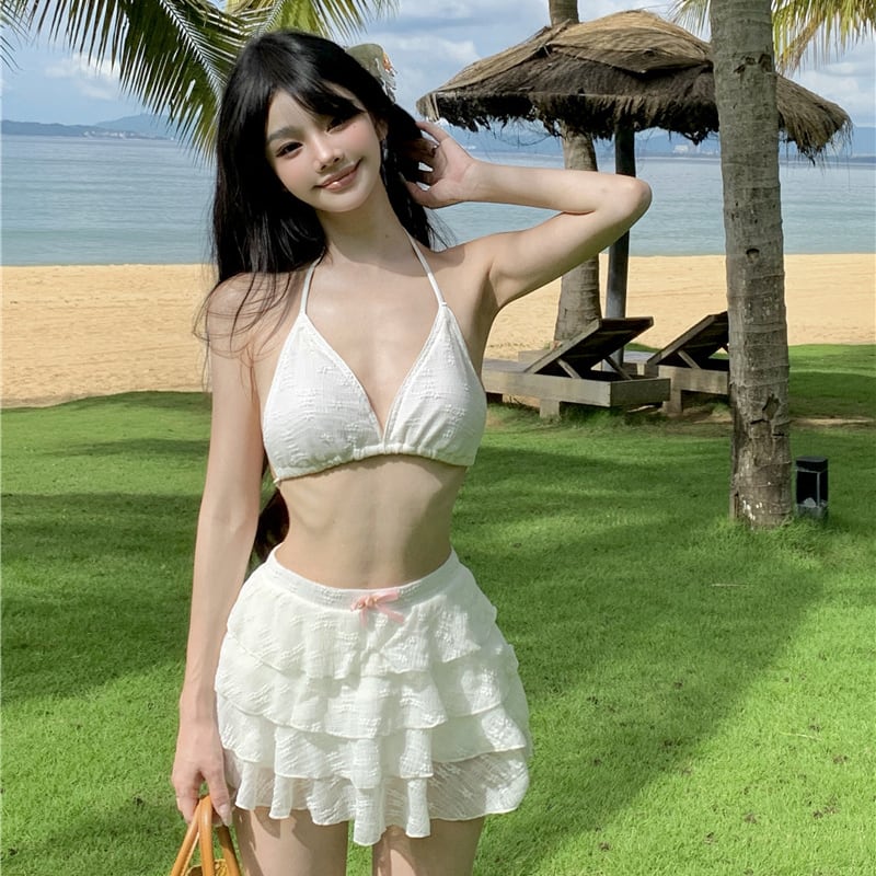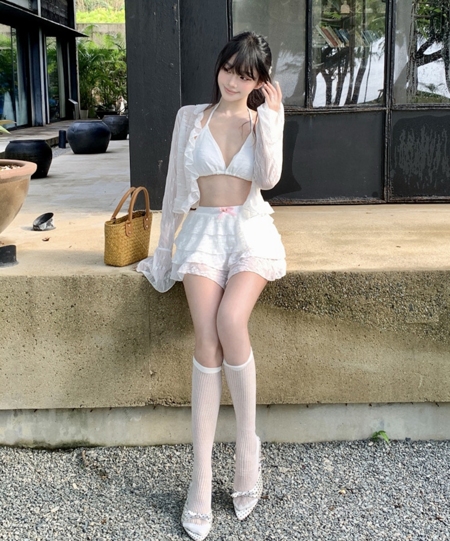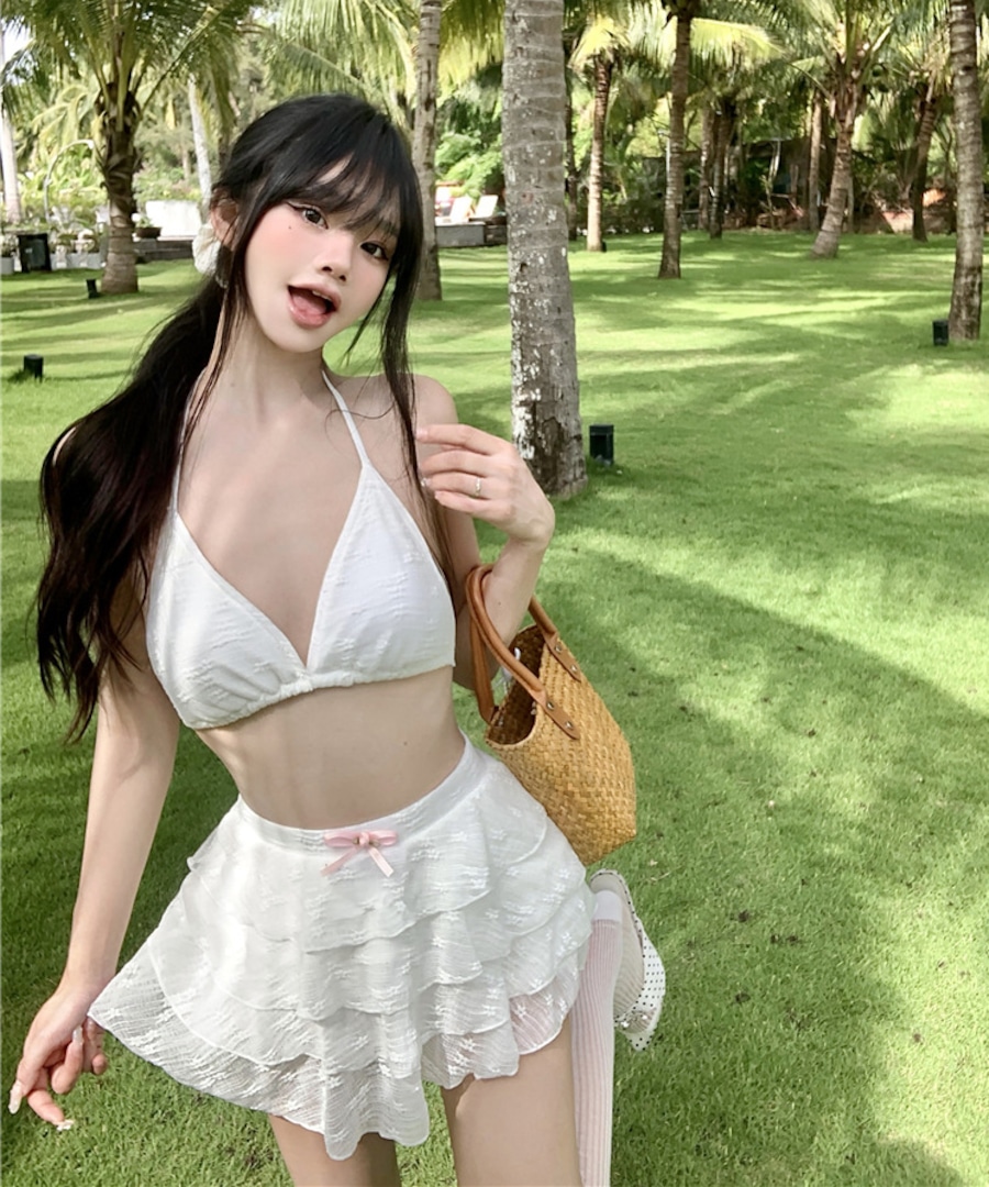 【3点セット】水着 ビキニ スカートビキニ ガーリー ティアードスカート 温泉 リゾート ビーチ JC7-DP-A23034