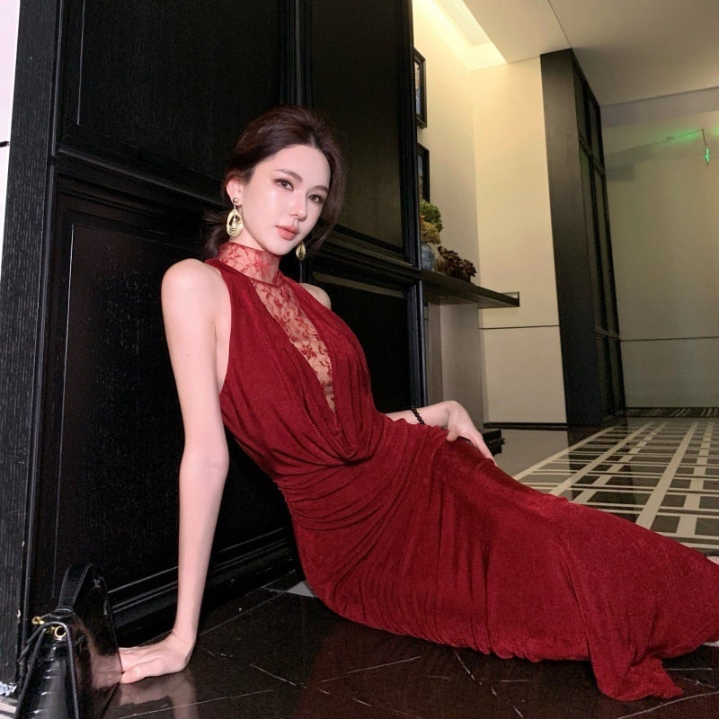 【2色】ミニドレス キャバドレス セクシー レース切り替え ドレープネック ノースリーブ ボディコン パーティー お呼ばれ JC2-CD6-157-83320760