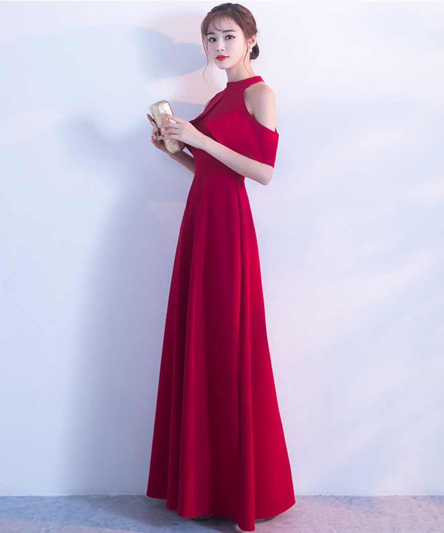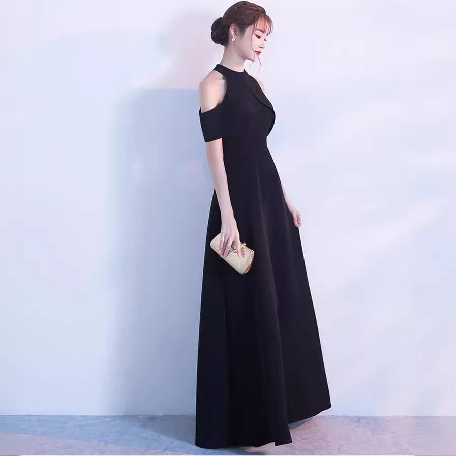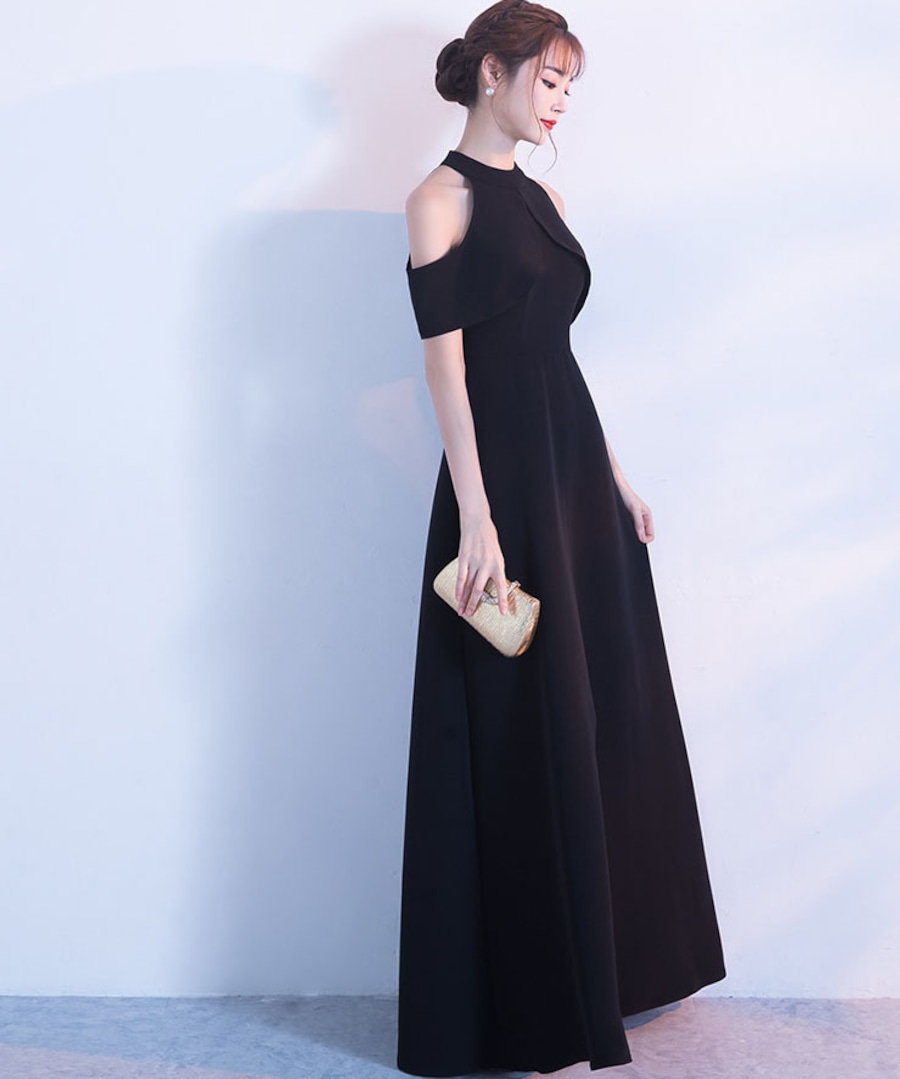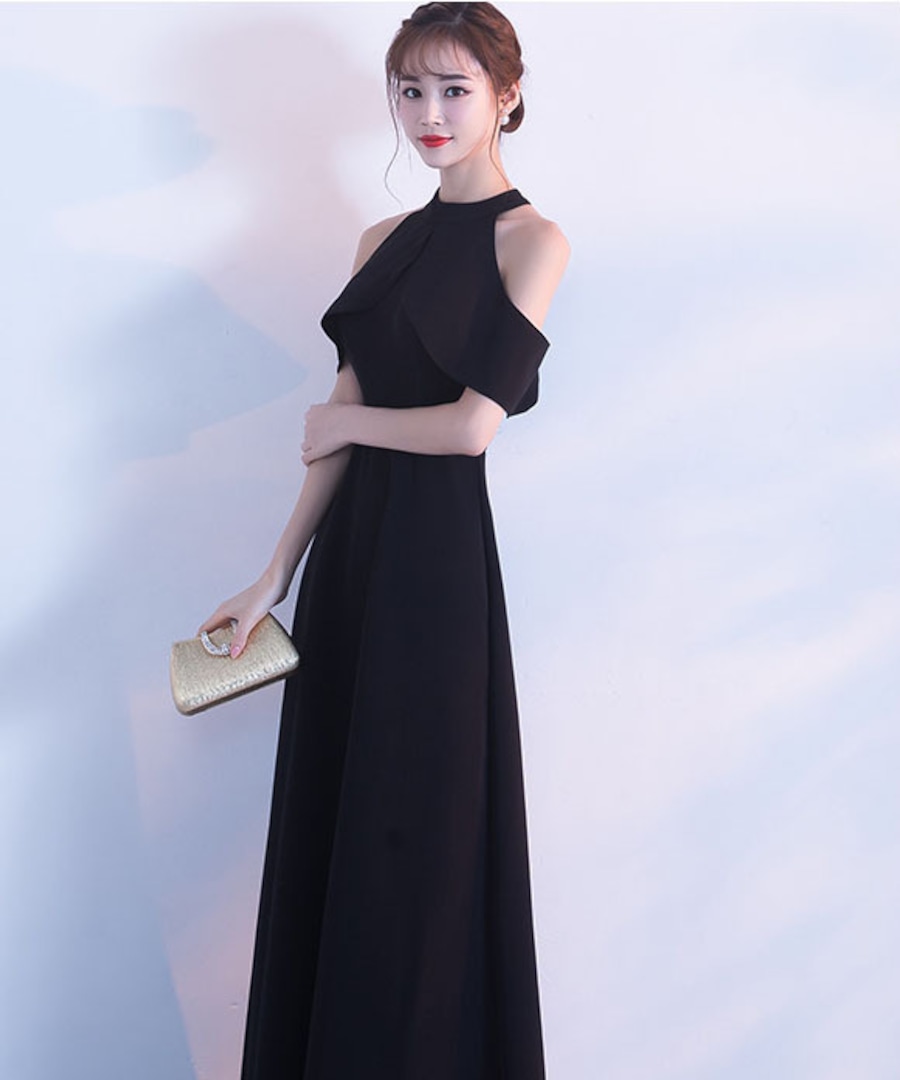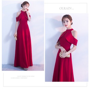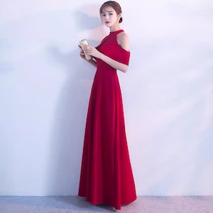 【2色】ロングドレス キャバドレス ゆったり Aライン ハイウエスト フレアスカート 上品 清楚 ホルターネック 結婚式DQ2-SJ3688