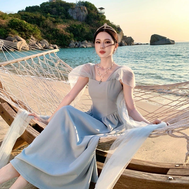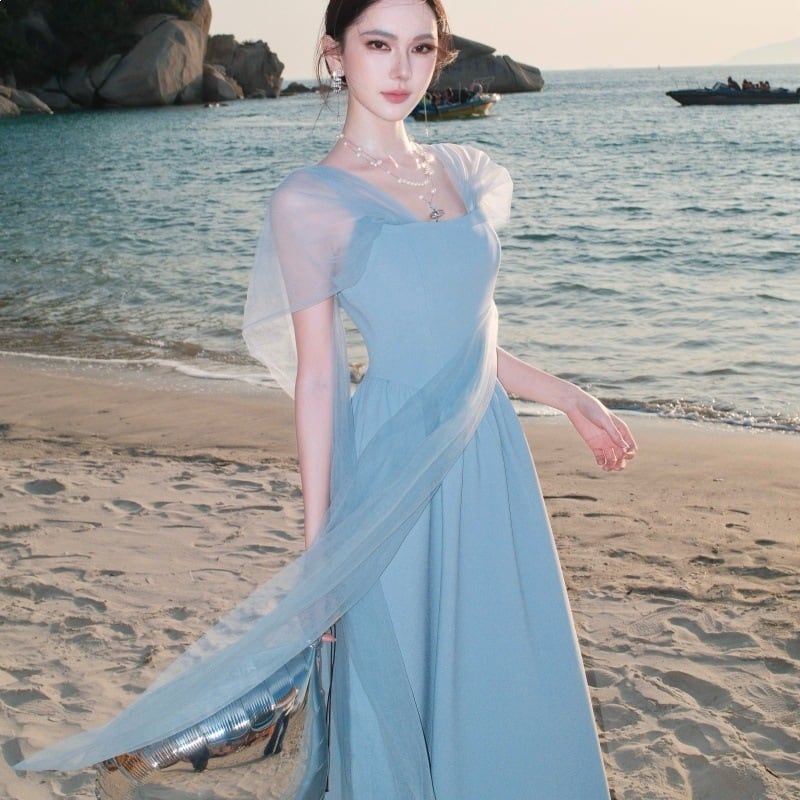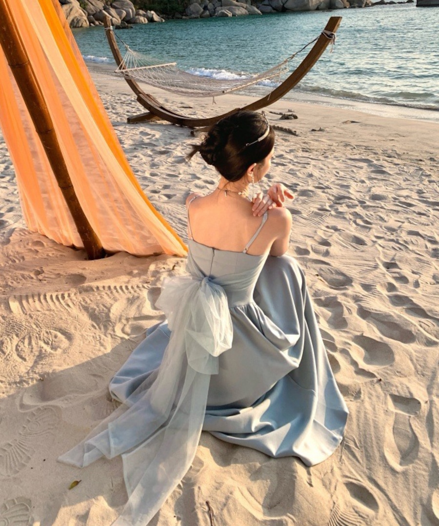 ロングドレス キャバドレス エレガント フレンチ チュール レースアップ リボン 写真映え リゾート JC2-MK-T-157A-8329
