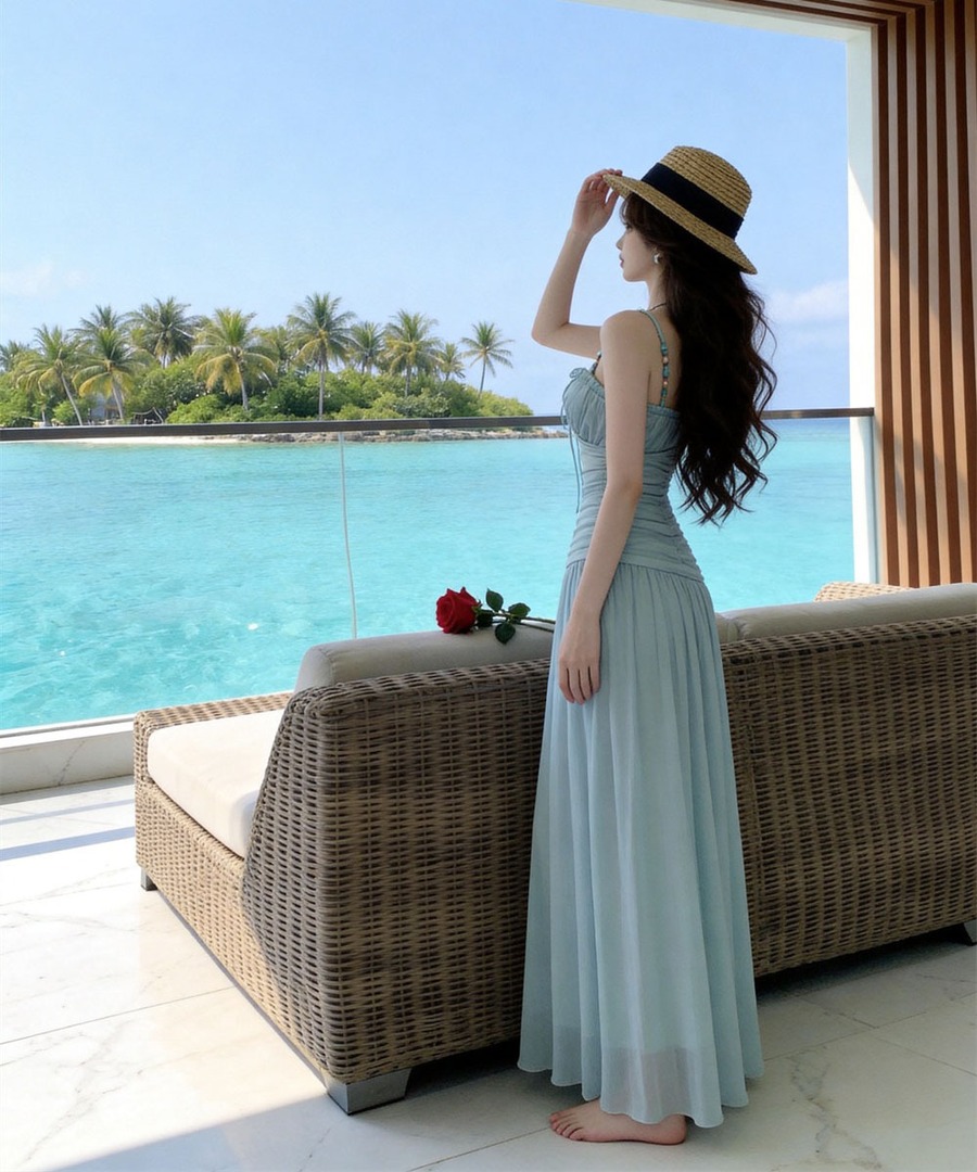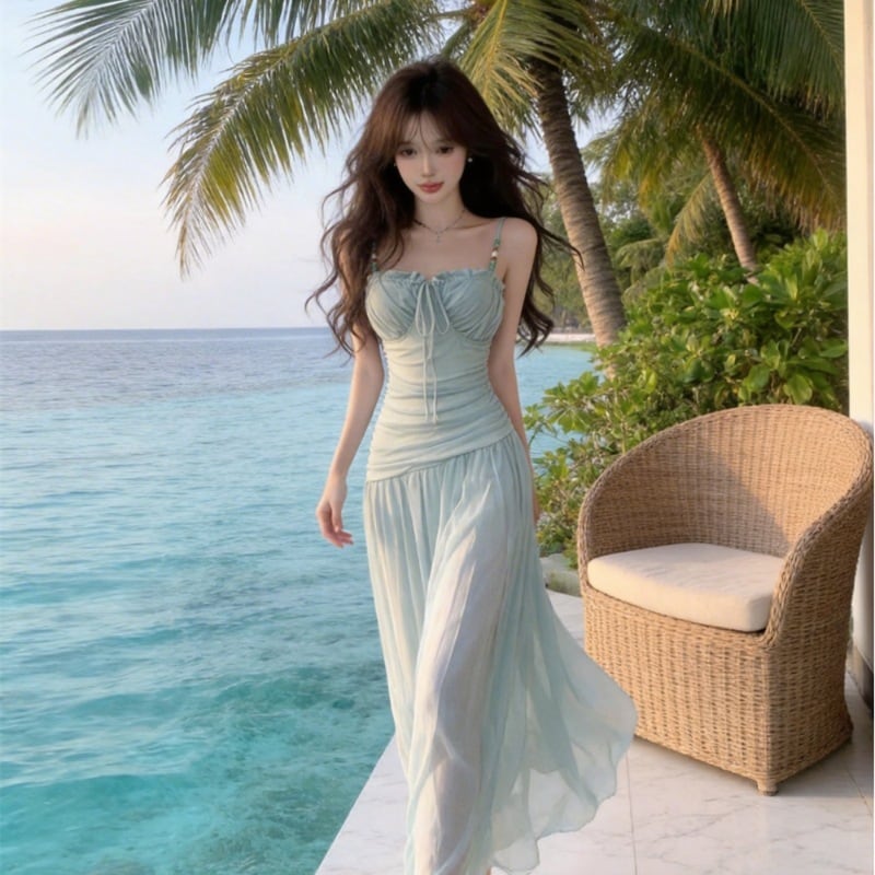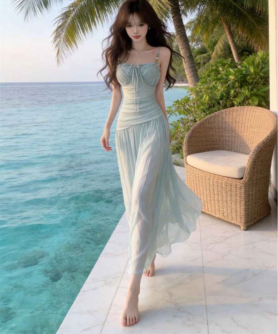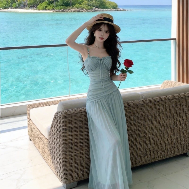 ロングドレス サンドレス セクシー ベアトップ ホルターネック ビーチ リゾート 清楚系 Aライン リゾート DQ2-DD403