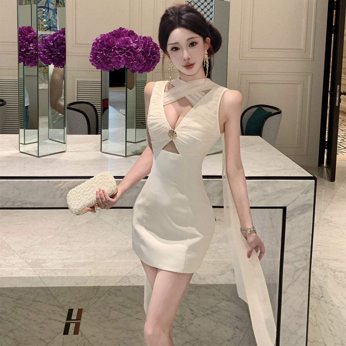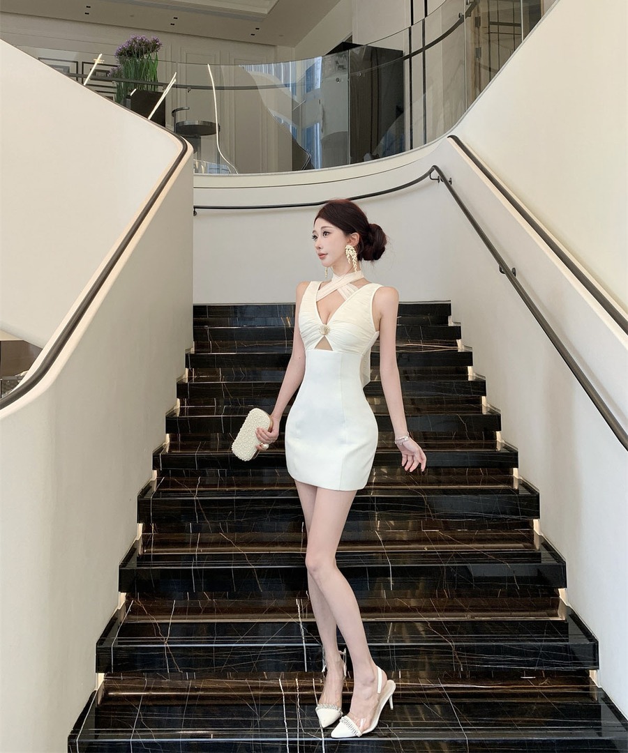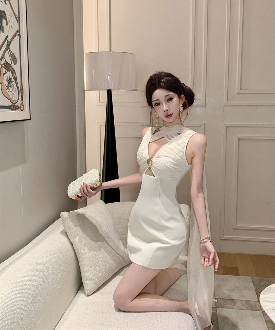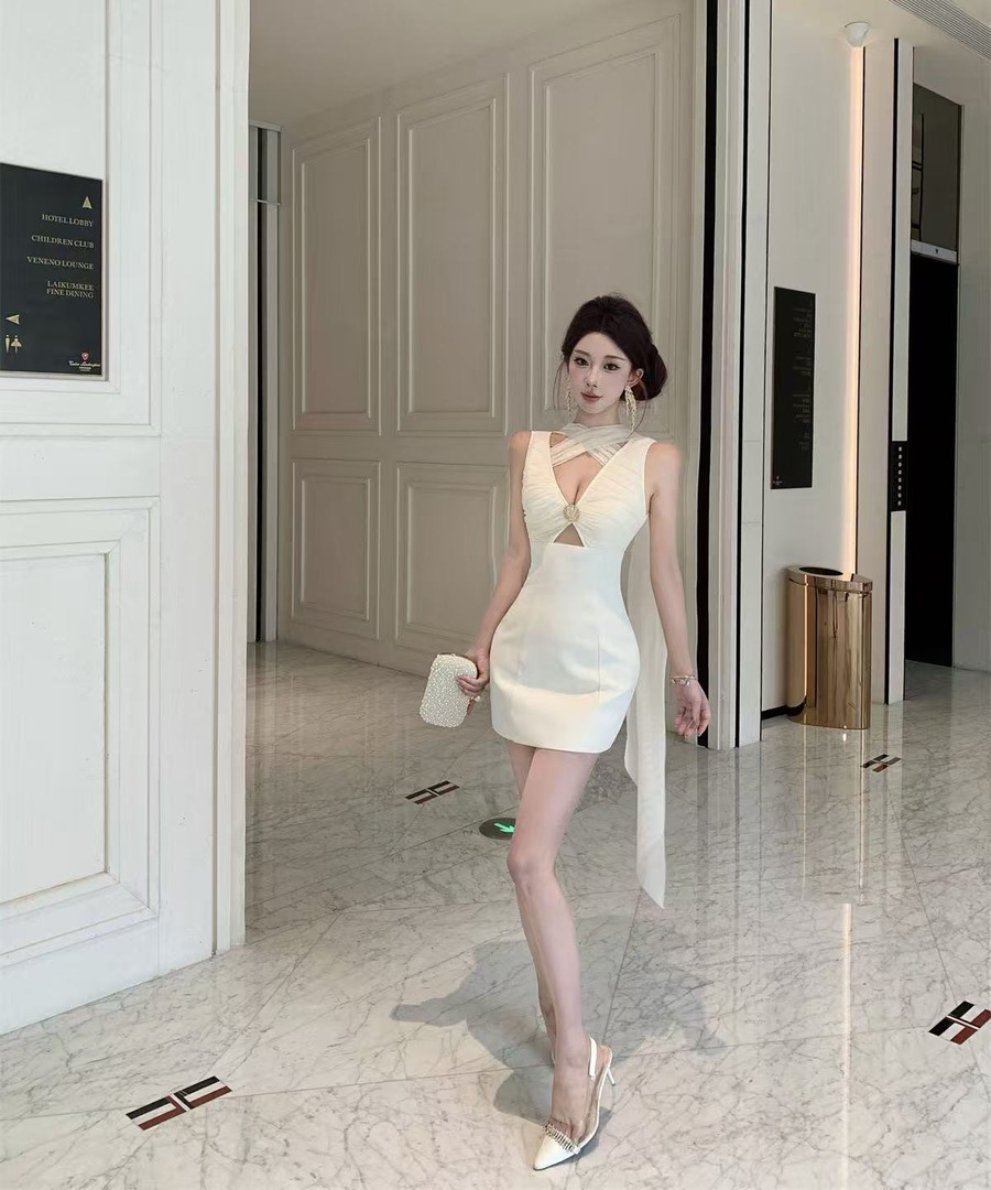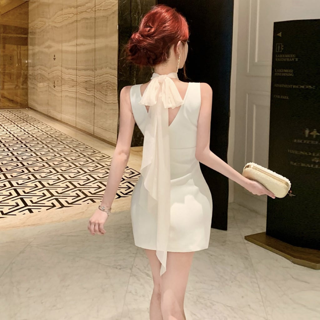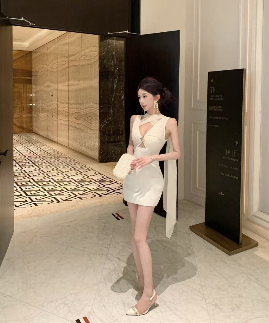 ミニドレス キャバドレス セクシー ホルターネック レースアップ カットアウト ボディコン クラブ 指名DQ2-WDS5691