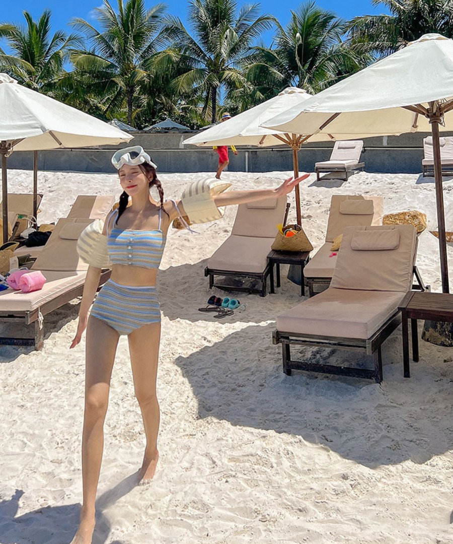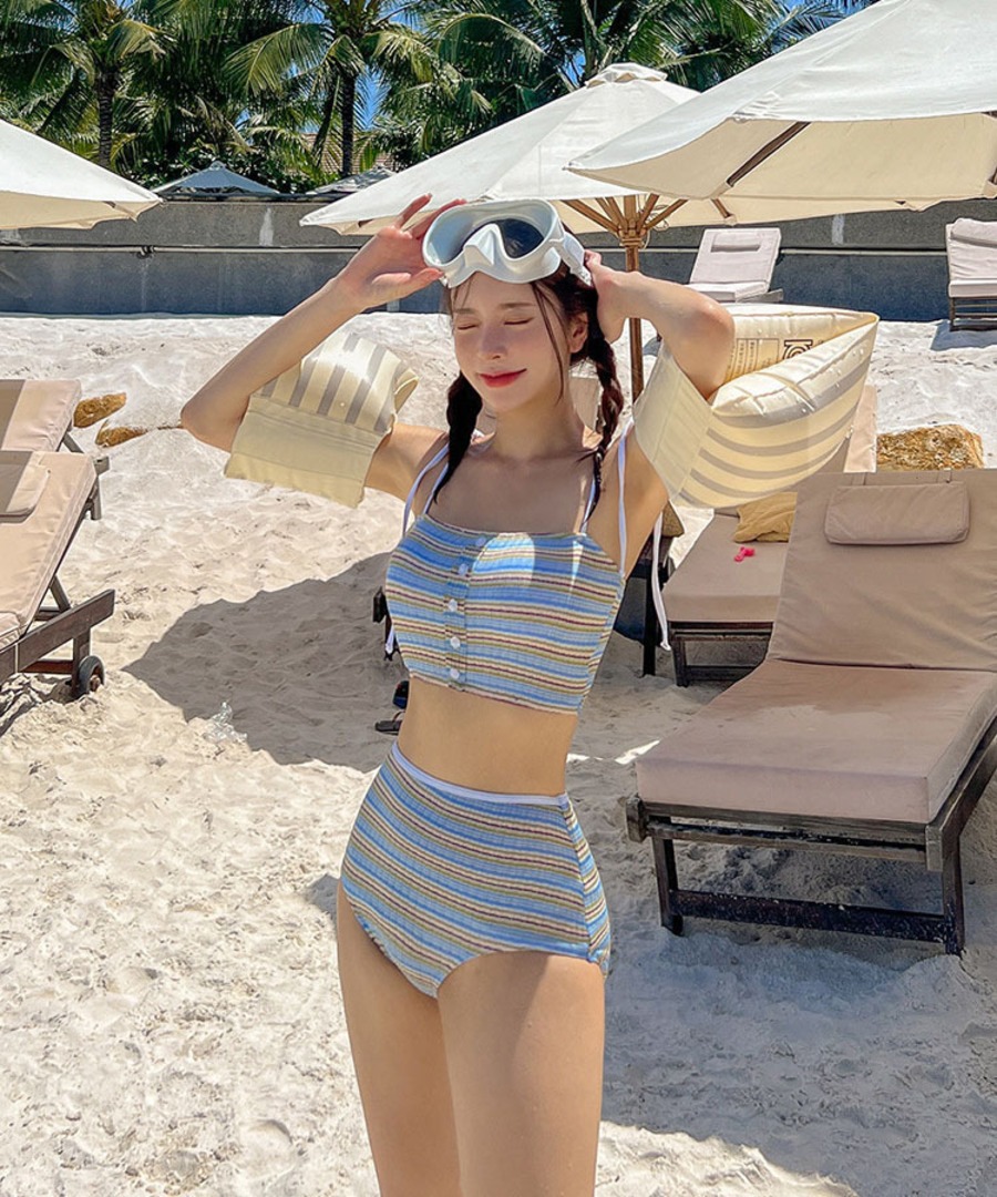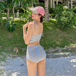 水着 ビキニ セクシー ストライプ ハイウエストビキニ キャミデザイン 写真映え ビーチ リゾート 温泉DQ7-DP-A23067