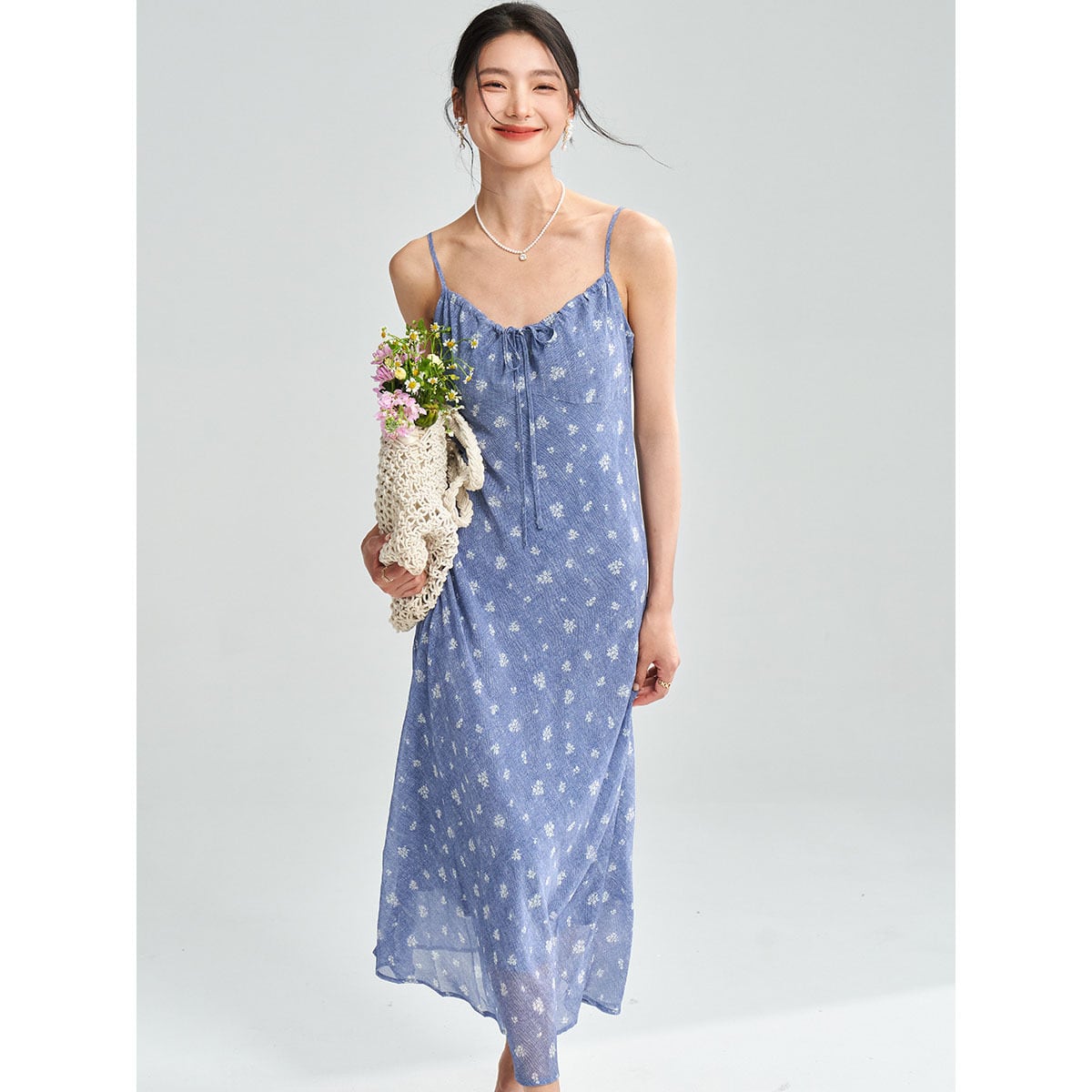 ロングドレス レディース キャミソール スパゲッティストラップ 花柄 小花柄 Aライン フレアシルエット 軽やか 通気性 涼しげ ナチュラル フェミニン きれいめ リゾート風 デート お出かけ 韓国ファッションDQ2-SH18282