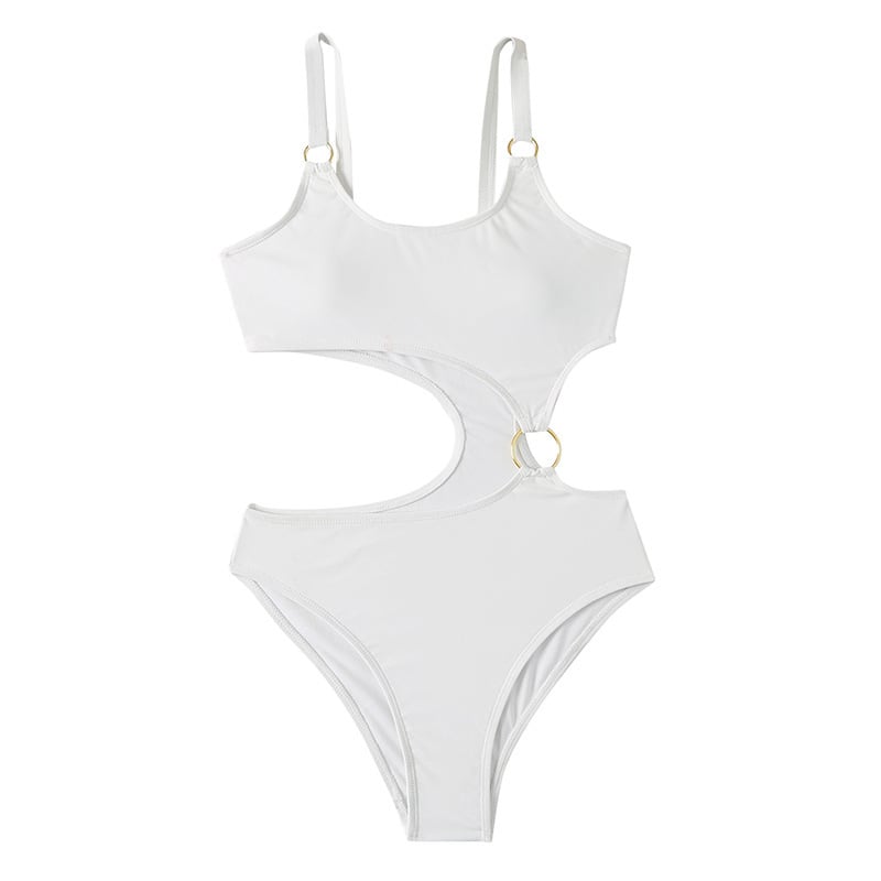 【2色】ワンピースビキニ レディース ホワイト カットアウトデザイン ゴールドバックル ハイウエスト セクシー ビーチ お出かけDQ7-DP-A29238