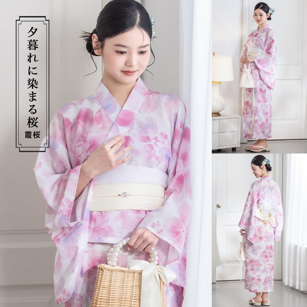 【予約販売開始】夕暮れに染まる桜 【浴衣3点セット 羽織/ワンピース/兵児帯】YD-057