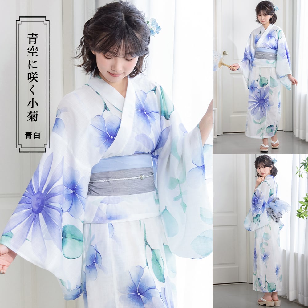 【予約販売開始】青空に咲く小菊 【浴衣3点セット 羽織/ワンピース/兵児帯】YD-065