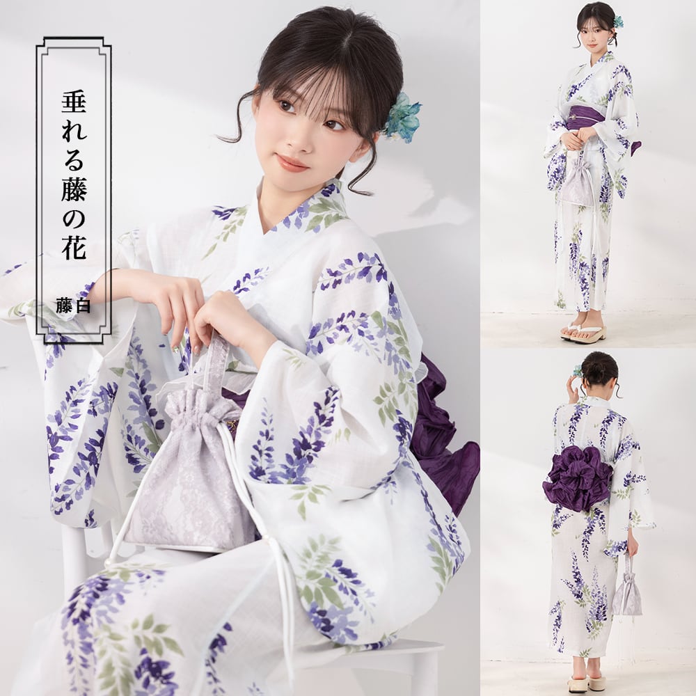 【予約販売開始】垂れる籐の花 【浴衣3点セット 羽織/ワンピース/兵児帯】YD-071