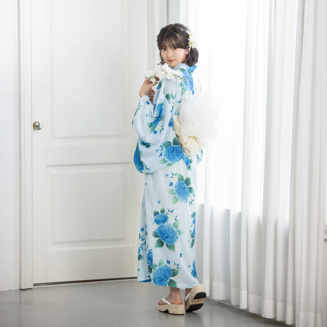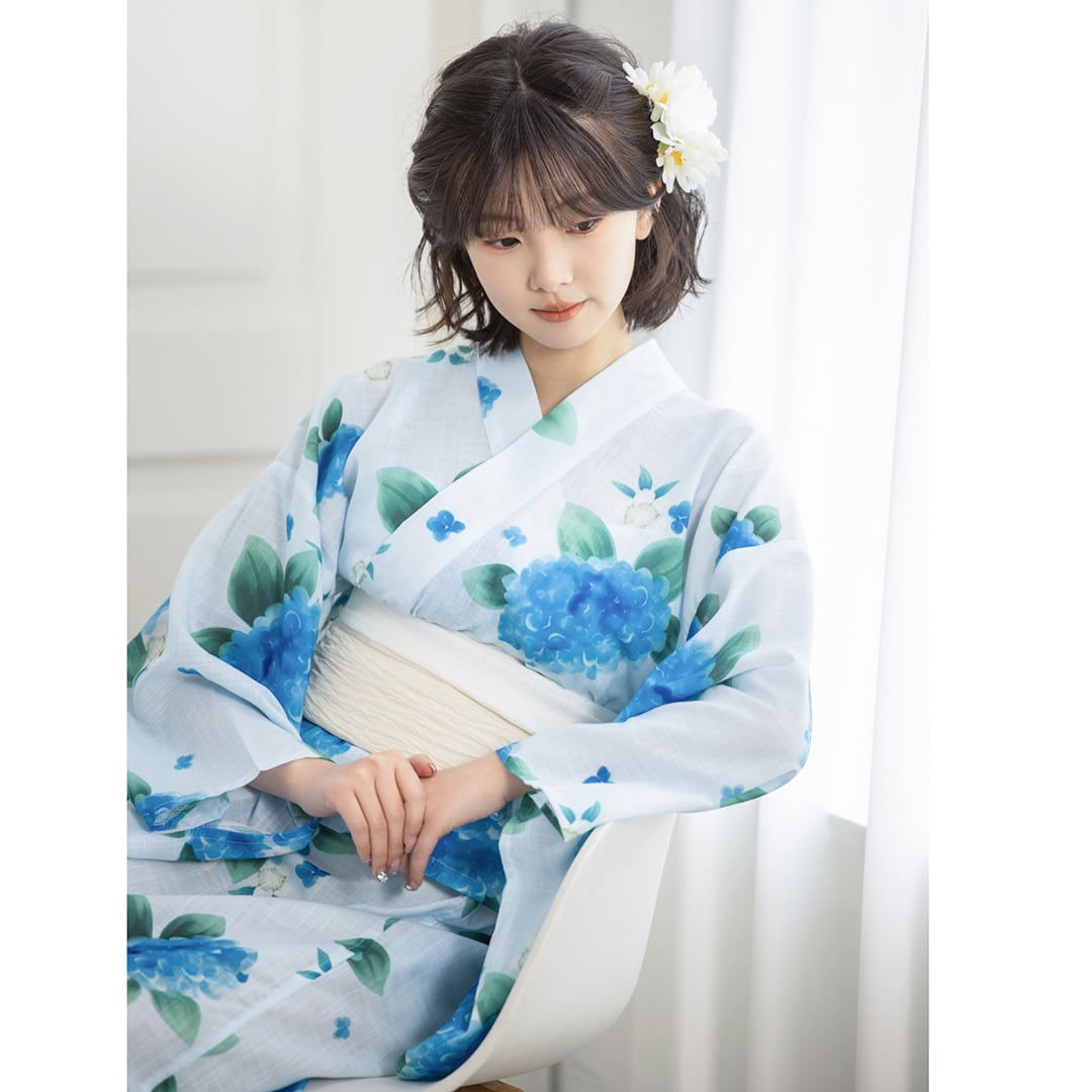 【予約販売開始】雨上がり紫陽花 【浴衣3点セット 羽織/ワンピース/兵児帯】YD-069