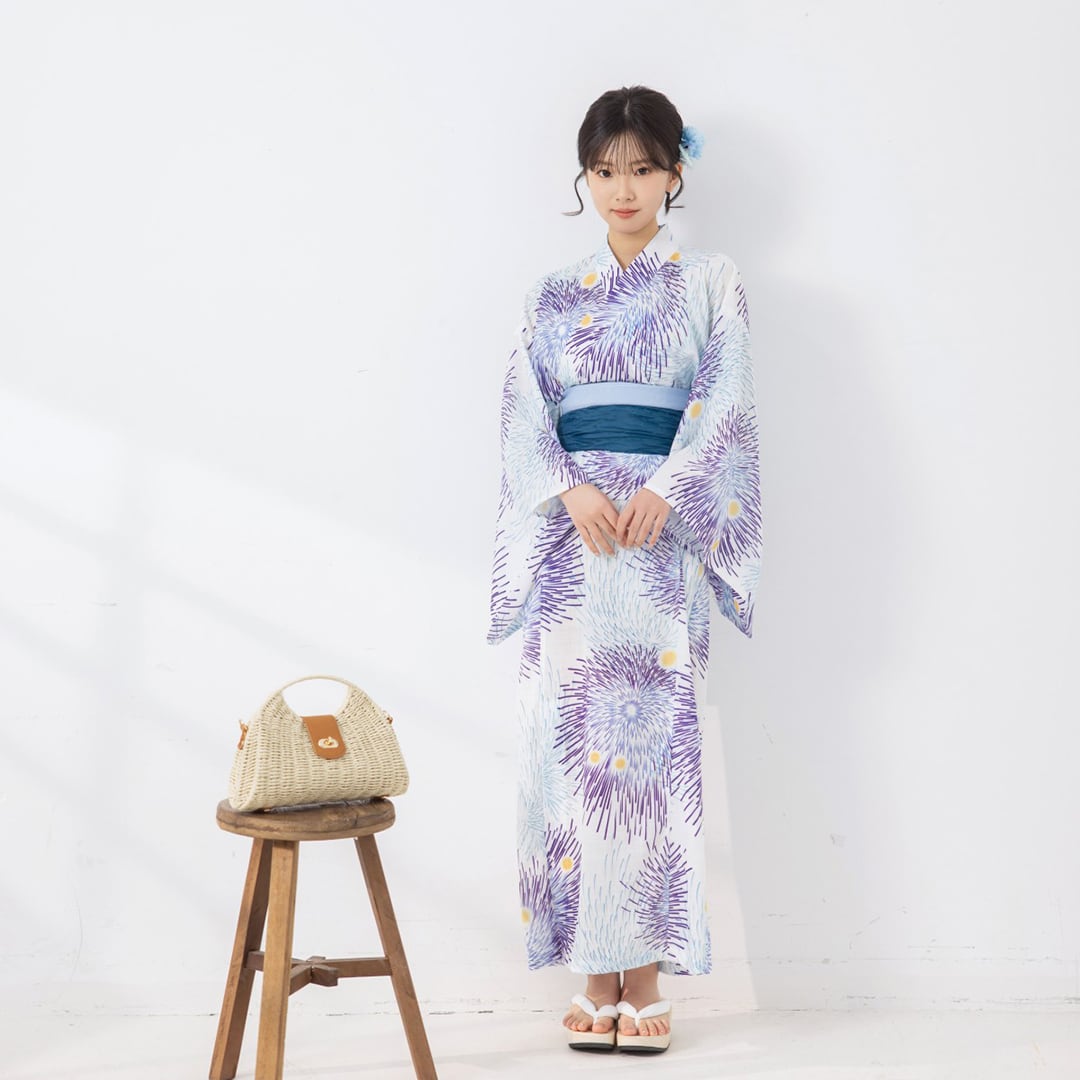 【予約販売開始】晴空に咲く花火 【浴衣3点セット 羽織/ワンピース/兵児帯】YD-070