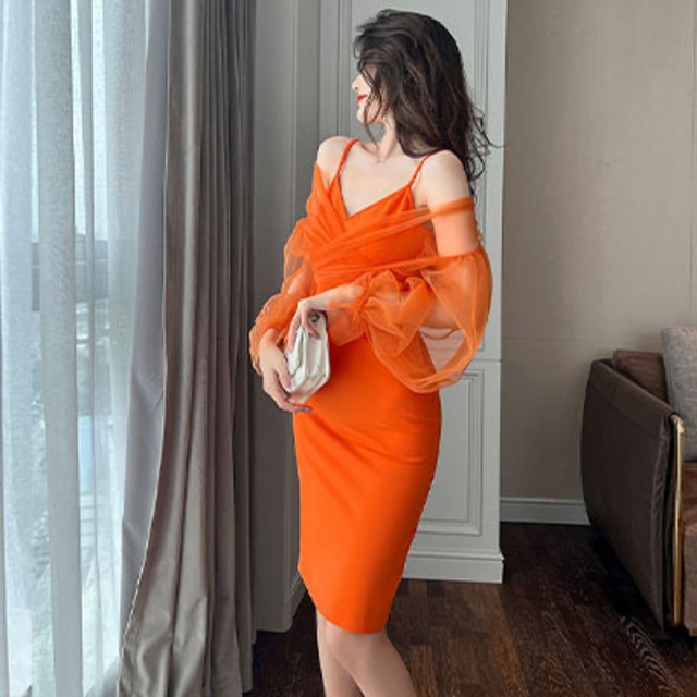 鮮やか ロングドレス チュール 宴会 二次会 着瘦せ 高級感 LT2-JY9460
