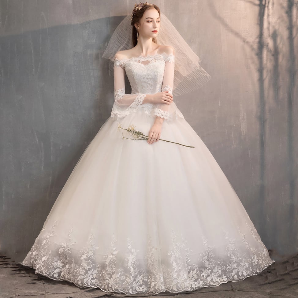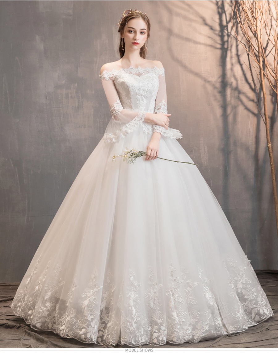 ナイトドレス 華奢感 ゴージャス ウエディングドレス フレア袖 披露宴 結婚式 演奏会 発表会XH2-CCHQ2001