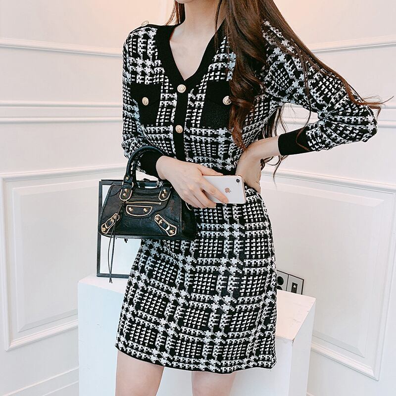 ミニドレス 着痩せ 新作 千鳥柄 高級 YT2-MLS4976