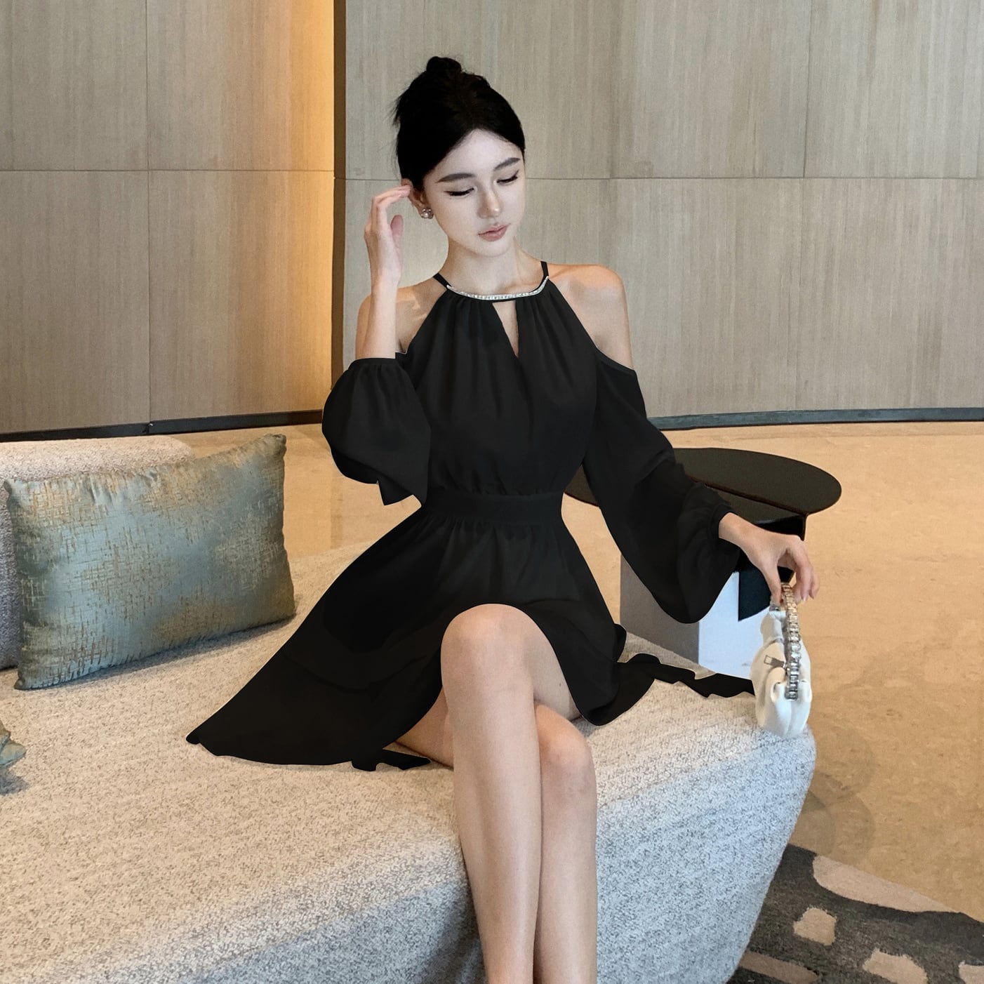 【ベージュ&ブラック】ミニドレス キャバドレス エレガント 気質 フリル 大人可愛い XH2-DD5043