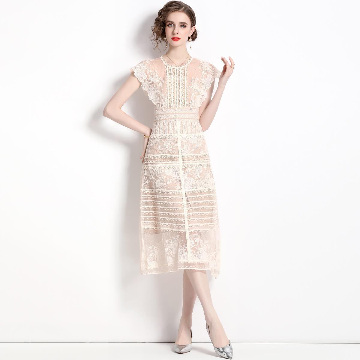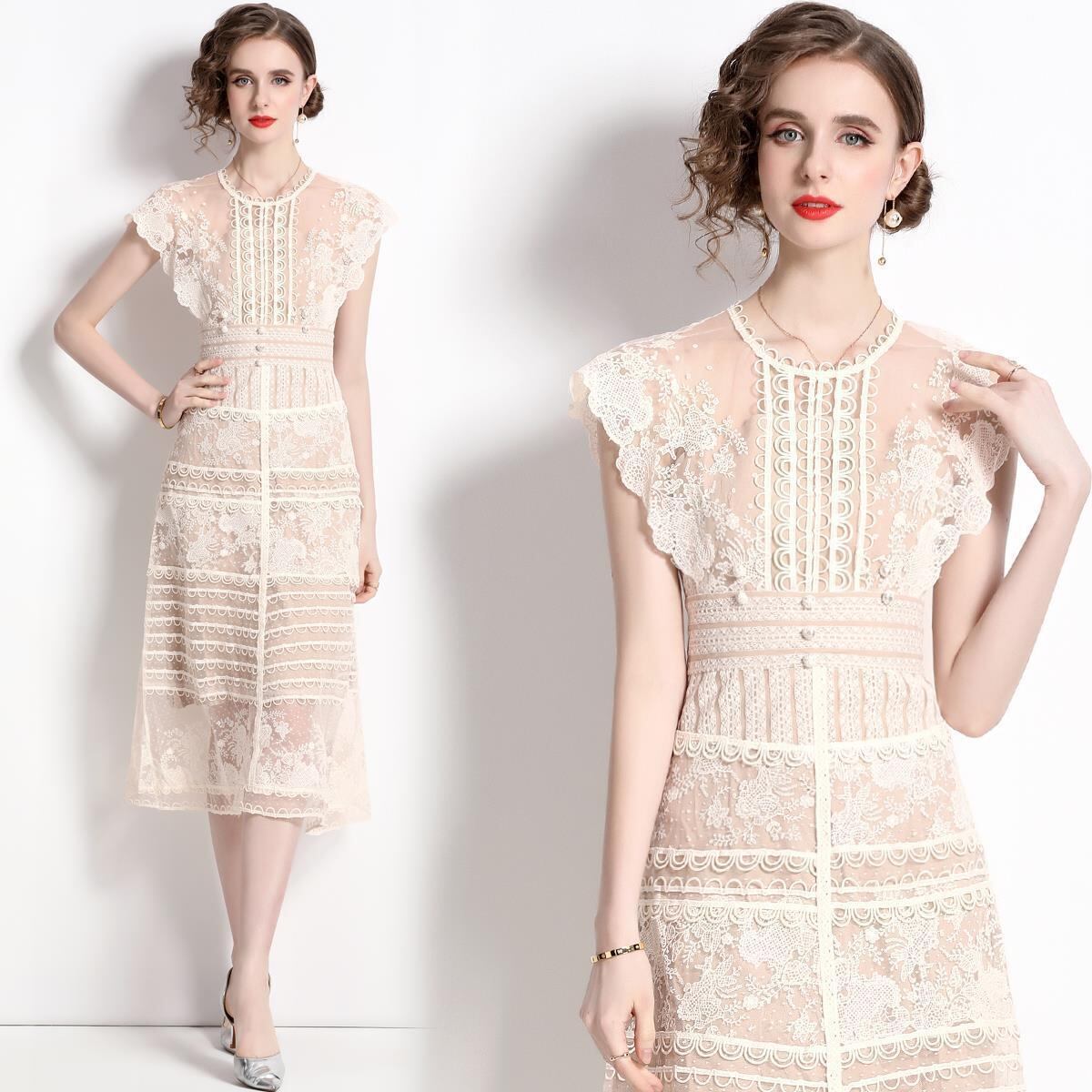 ひざ丈ドレス 刺繡 かわいい ゴージャス 高見え 透け感 レース MY2-ZY-9065#701