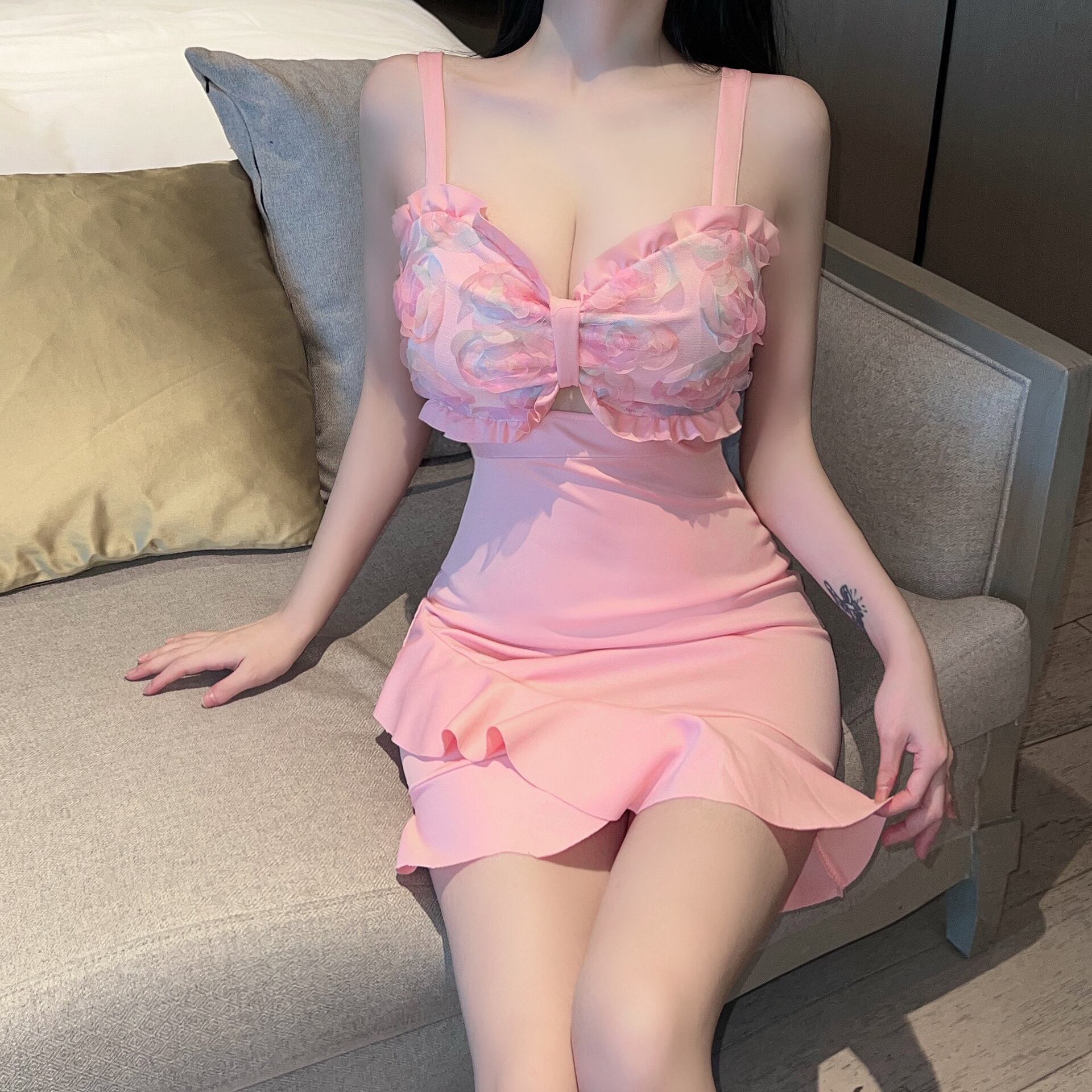 【2色】ミニドレス キャバドレス カワセクシー 谷間見せ 花柄 フリル 非対称 XH2-DD4587