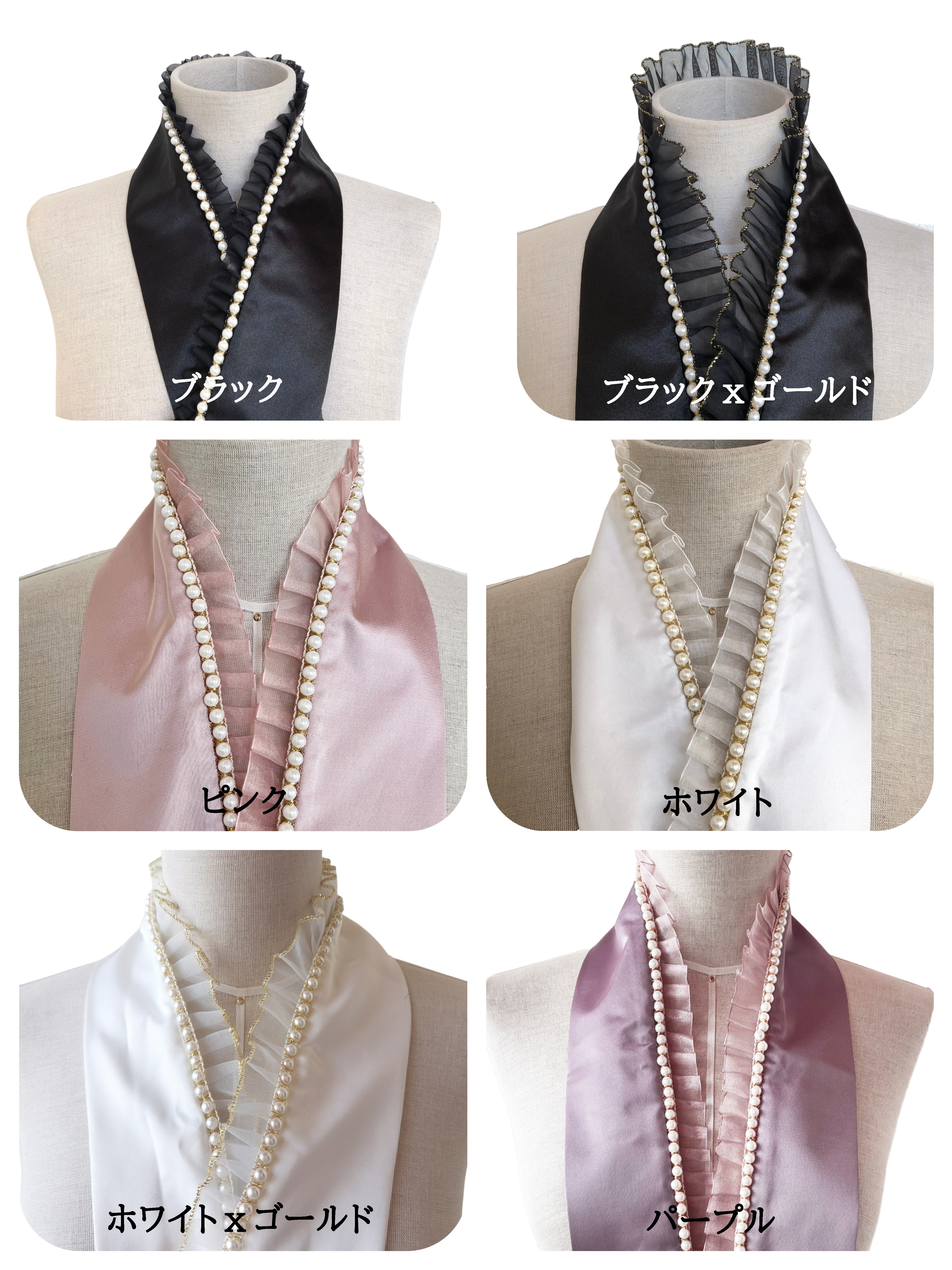 【6色・日本即日発送】重ね衿 伊達襟 パール フリル 着物 呉服 浴衣 和小物 和装 ZL-001