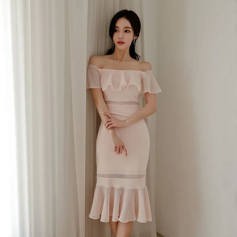 膝丈ドレス キャバドレス ワンショルダー 着痩せ セクシー エレガント おしゃれ YH2-ZED882709BH506