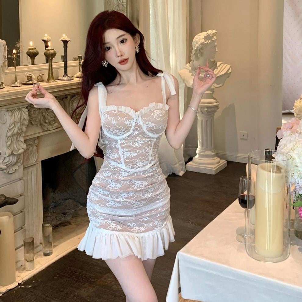 ミニドレス キャバドレス かわいい 名媛風 レース セクシー おしゃれ 着痩せ YH2-ZED888362DXH238A