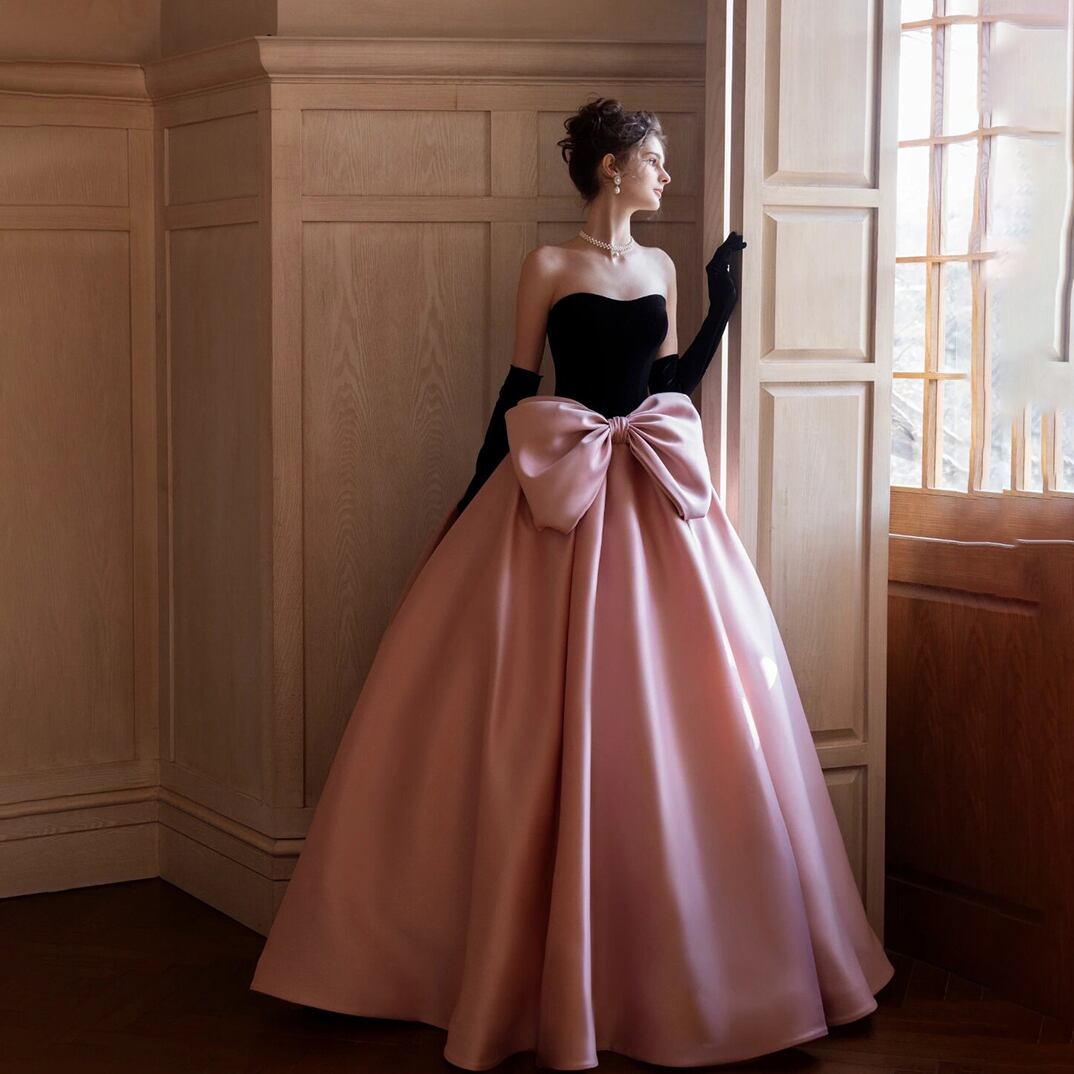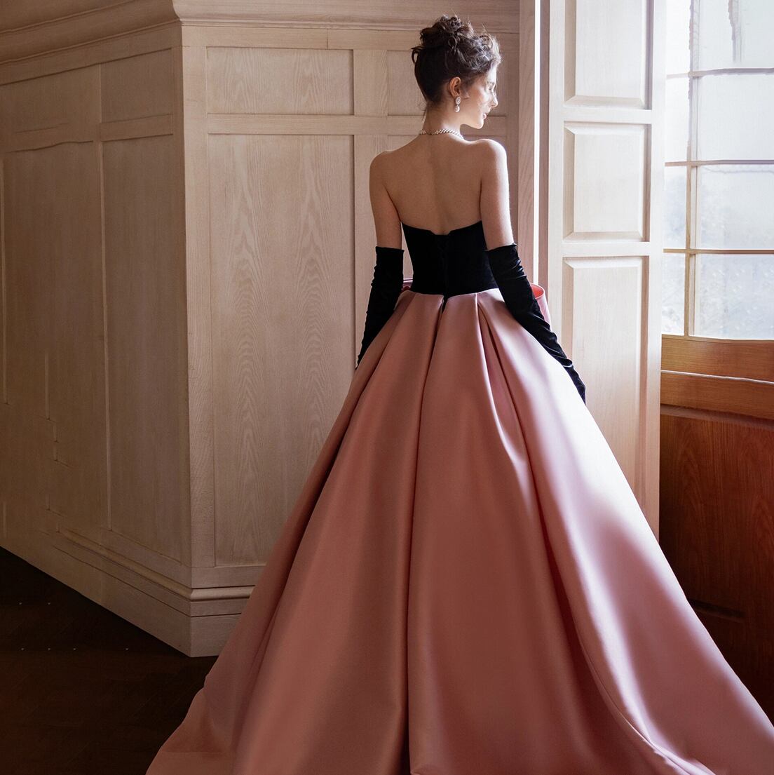 手作り バースデーロングドレス 宴会 パーティー 演奏会 ベアトップ リボン XH2-DRX24508-2