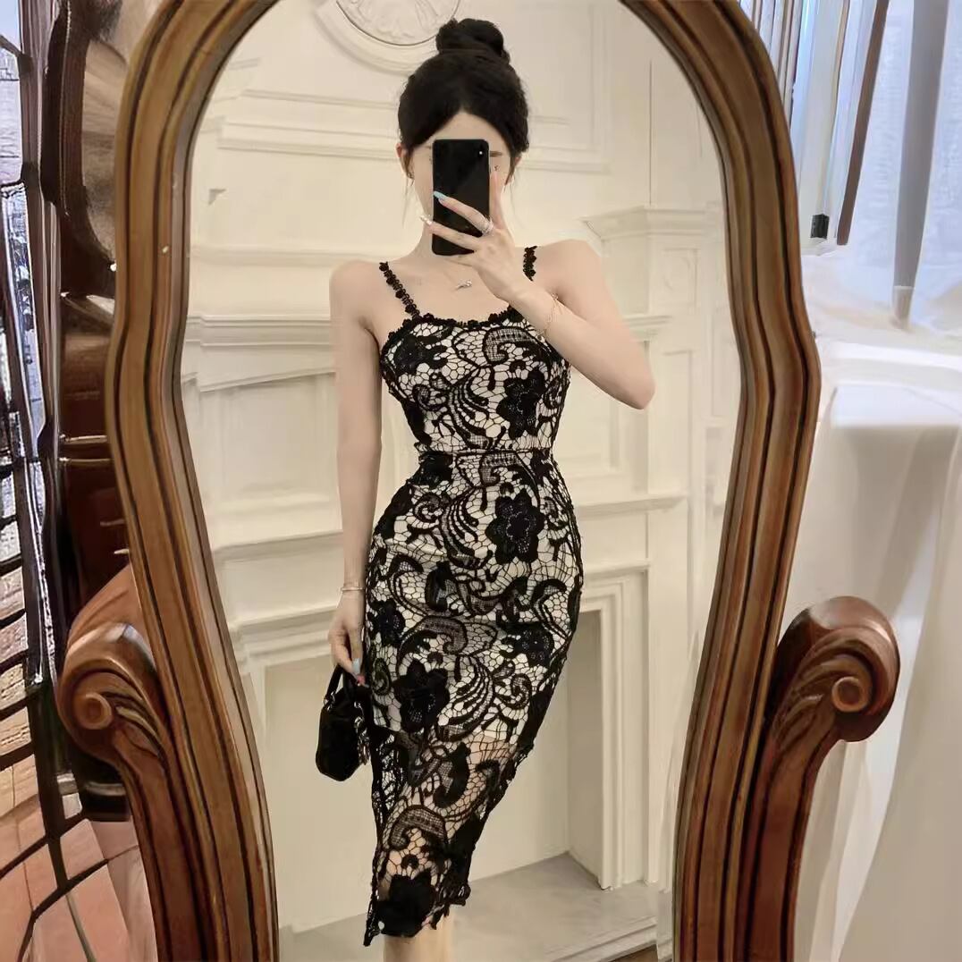 【2色】膝丈ドレス キャバドレス セクシー レース セクシー 指名 気質 Vネック 小顔 谷間見せ XH2-DD6761