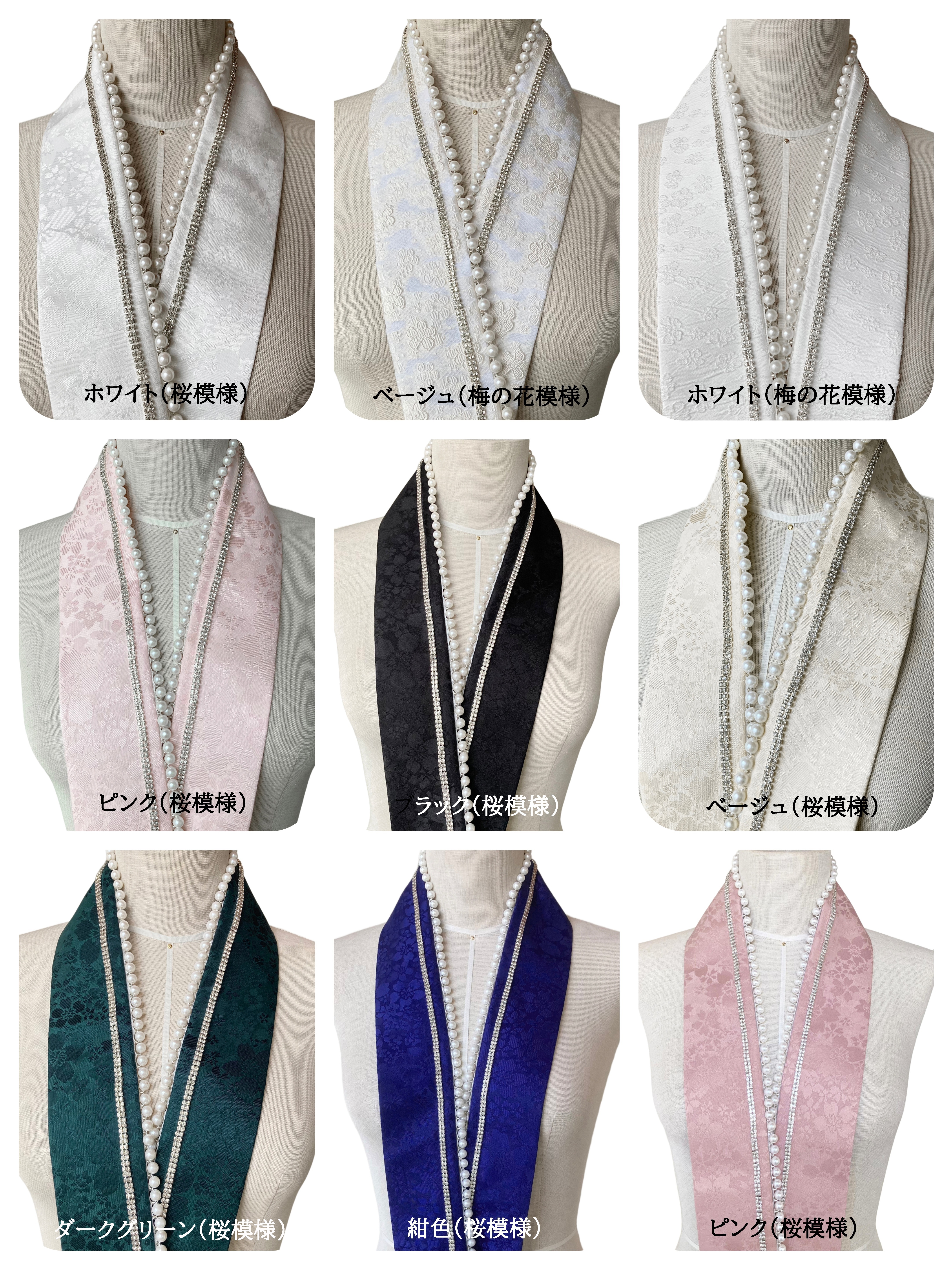 【日本即日発送&新色追加】重ね襟 重ね衿 伊達衿 パール ダイヤモンド 地紋 女性用半襟 着付け小物 重ねえり 振袖 袴 成人式 卒業式 着物 浴衣 桜 ZL-003