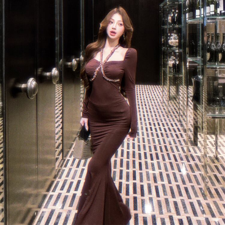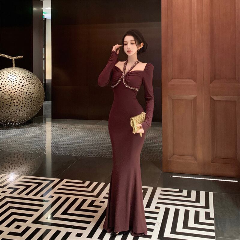 ロングドレスキャバドレスキラキラセクシーセレブ風袖付きエレガントXH2-XKD-D355-5968-Nov11